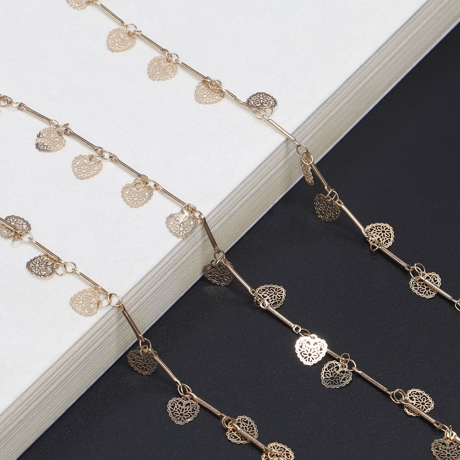 Металлическая нескользящая цепочка, золотая полая с сердцами, для очков и масок GL333