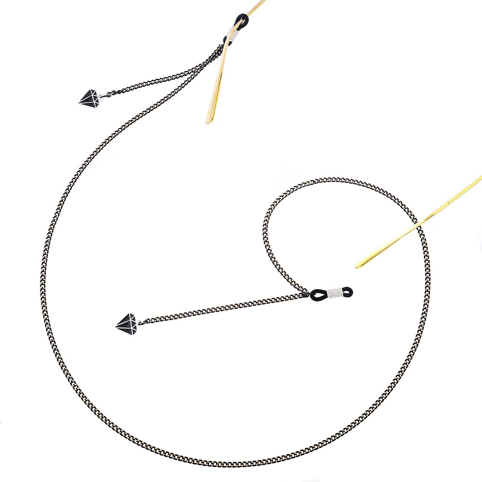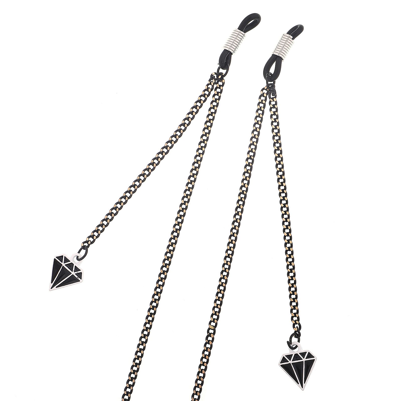 Металлическая нескользящая цепочка черного цвета, с подвеской в виде диаманта, для очков и масок GL369