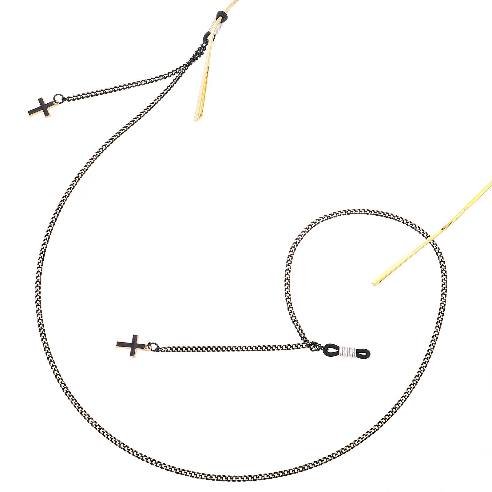 Металлическая нескользящая цепочка черного цвета, с подвеской в виде креста, для очков и масок GL370