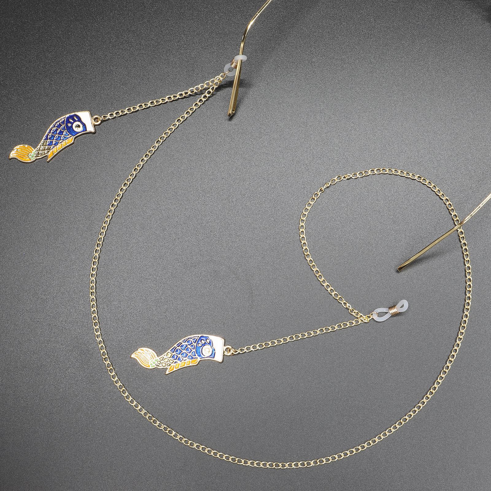 Металлическая нескользящая цепочка золотого цвета, с подвеской в виде карпа, для очков и масок GL375