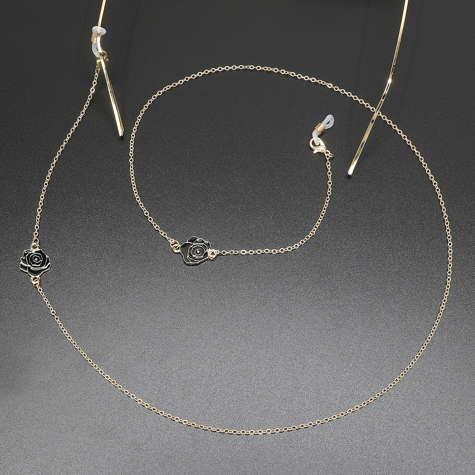 Металлическая нескользящая цепочка золотого цвета, с черной розой, для очков и масок GL394