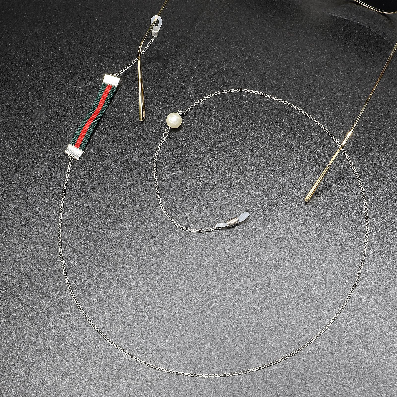 Металлическая нескользящая цепочка, с тканевым ремешком и жемчугом, для очков и масок GL416