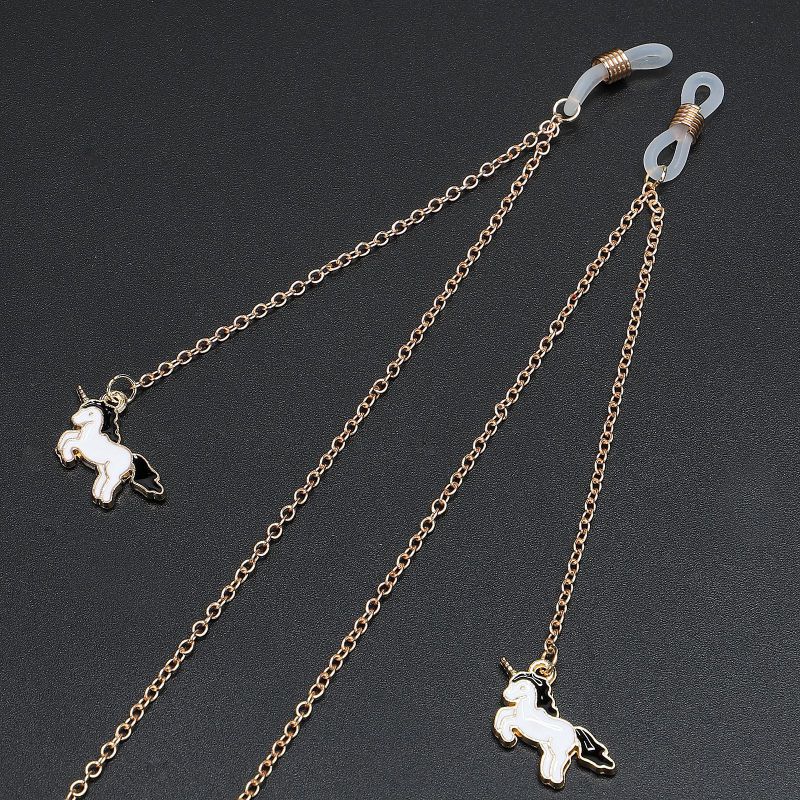Металлическая нескользящая цепочка золотого цвета, с подвеской в виде единорога, для очков и масок GL445