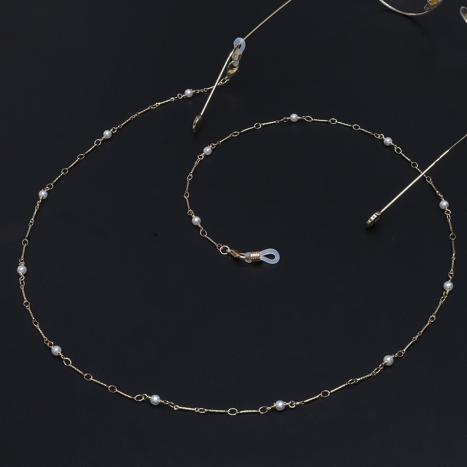 Металлическая нескользящая цепочка золотого цвета, с медными и жемчужными бусинами, для очков и масок GL519