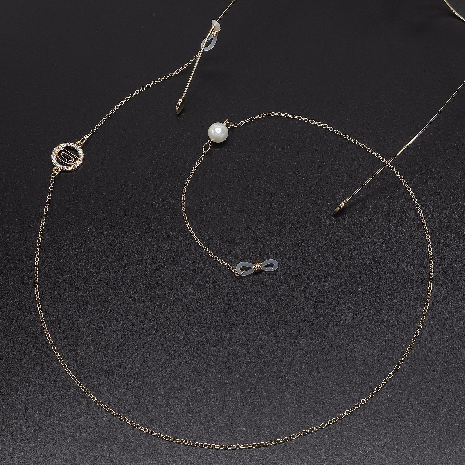 Металлическая нескользящая цепочка, с подвеской в виде буквы D и жемчужной бусиной, для очков и масок GL545