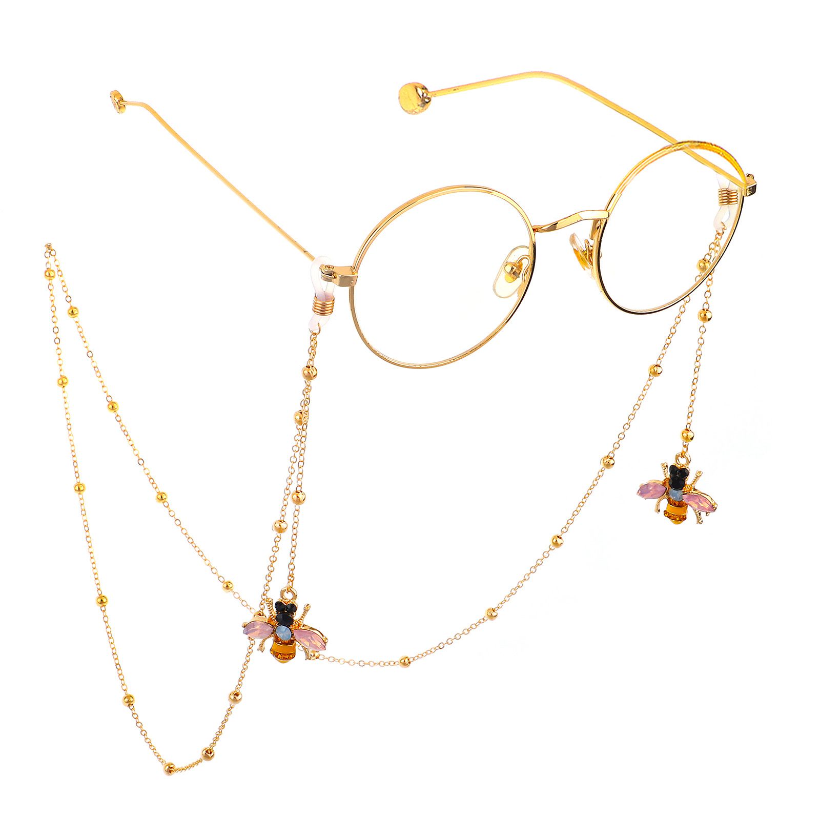 Металлическая нескользящая цепочка золотого цвета, с кулоном в форме пчелы и бусинами, для очков и масок GL547