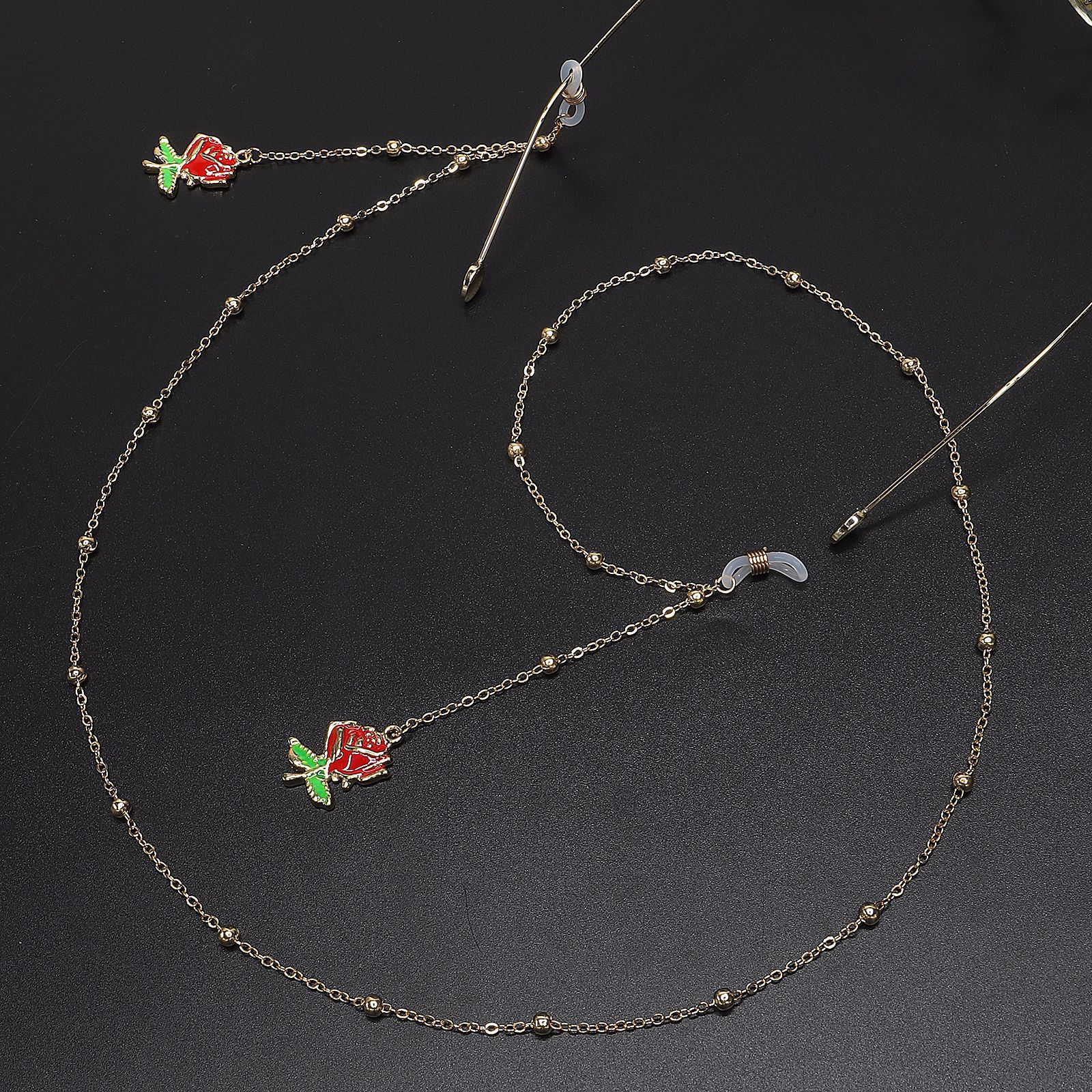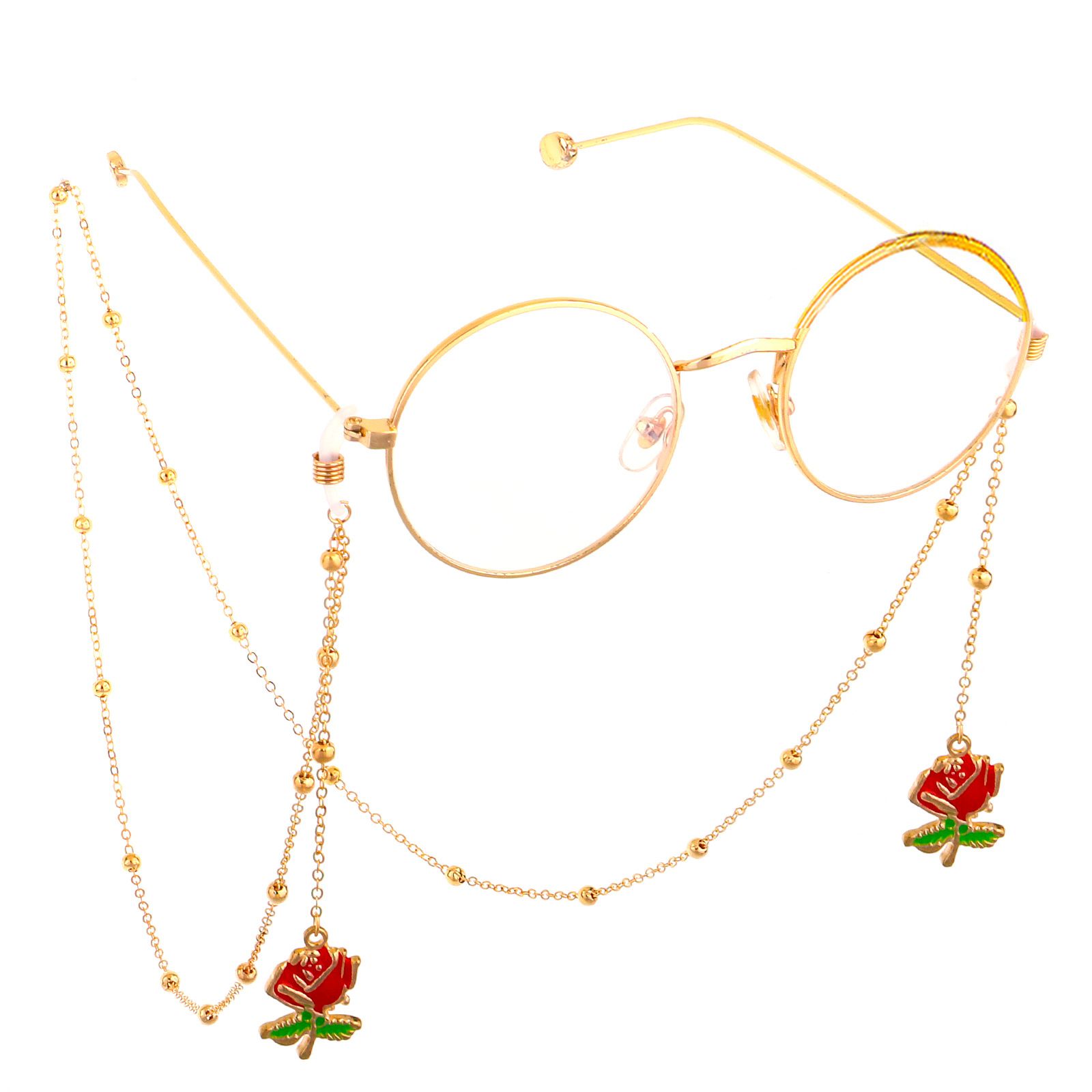 Металлическая нескользящая цепочка золотого цвета, с подвеской роза и бусинами, для очков и масок GL554