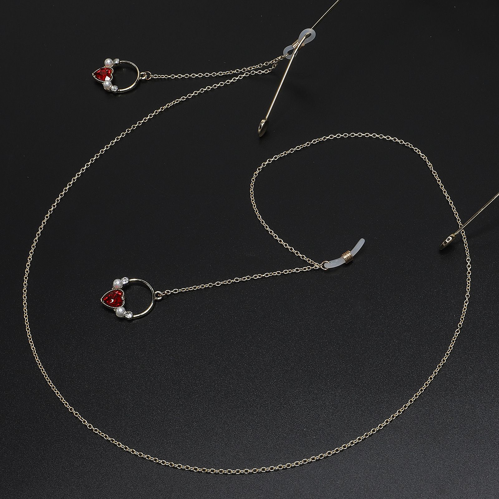 Металлическая нескользящая цепочка золотого цвета, с подвеской в виде сердца с жемчугом, для очков и масок GL570
