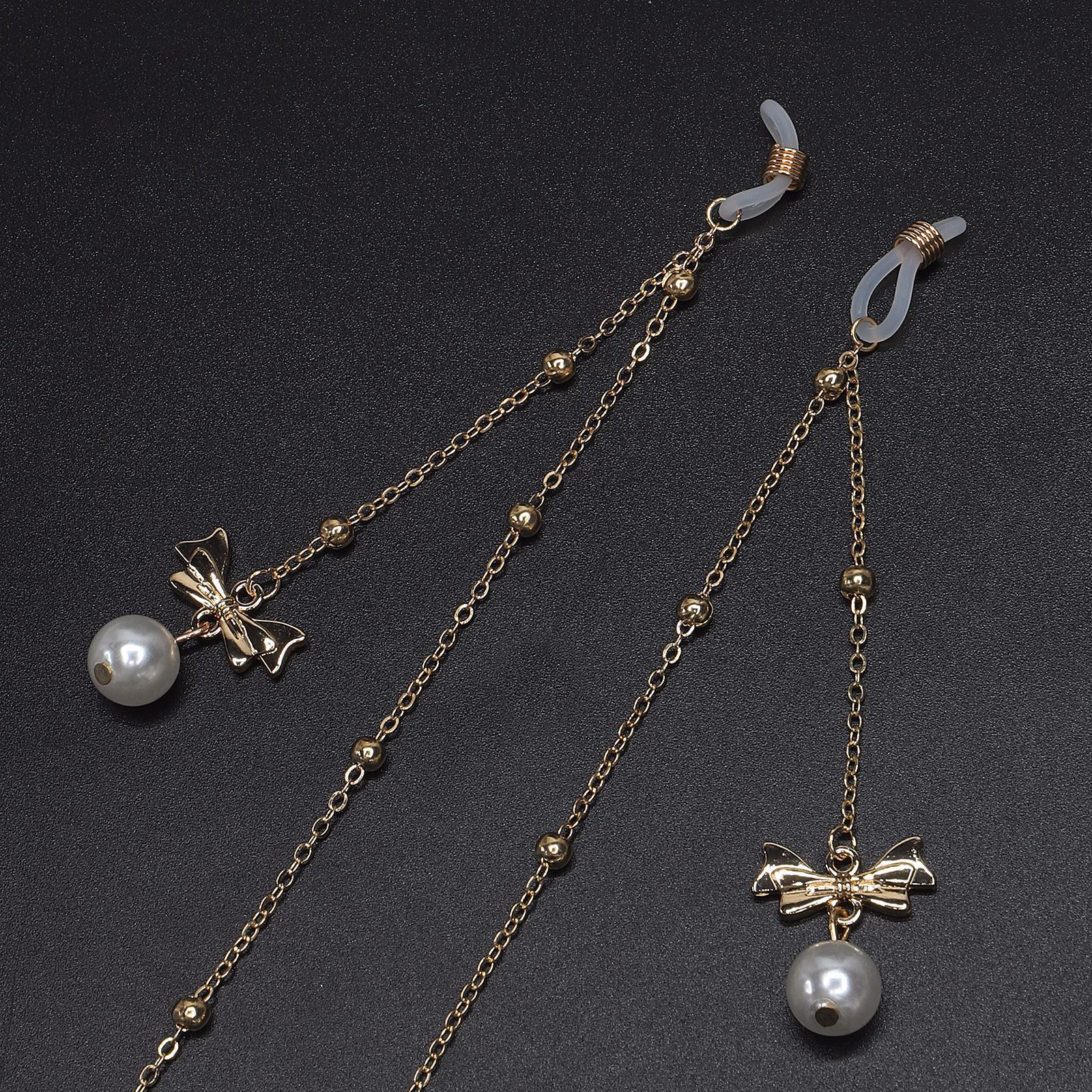 Металлическая нескользящая цепочка золотого цвета, с подвеской бант с жемчужиной и бусинами, для очков и масок GL573