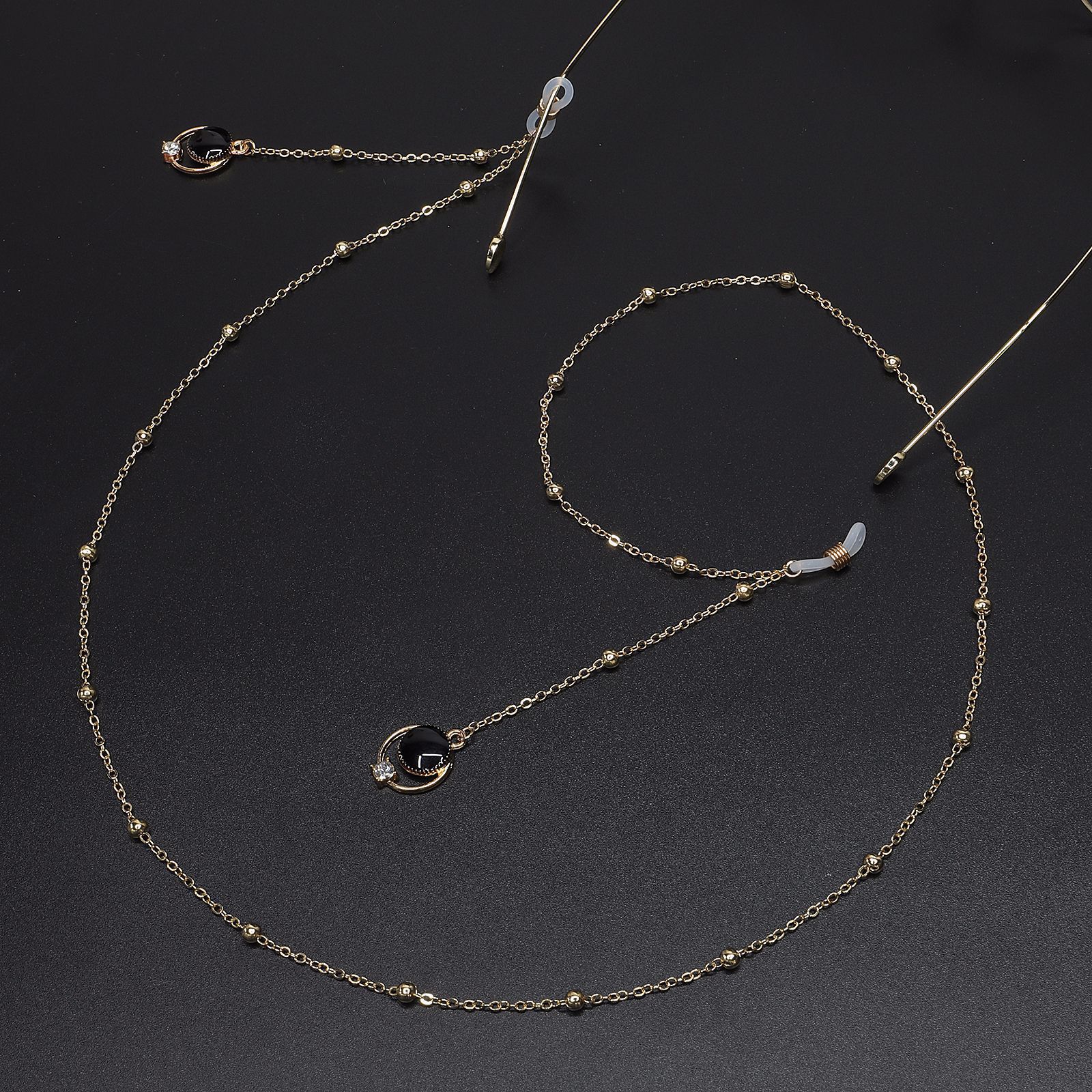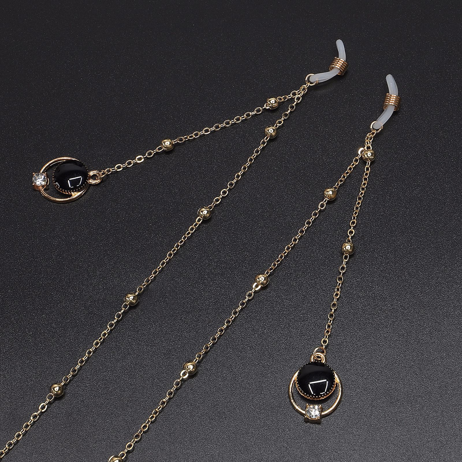 Металлическая нескользящая цепочка золотого цвета, с подвеской черный жемчуг и стразами, для очков и масок GL579