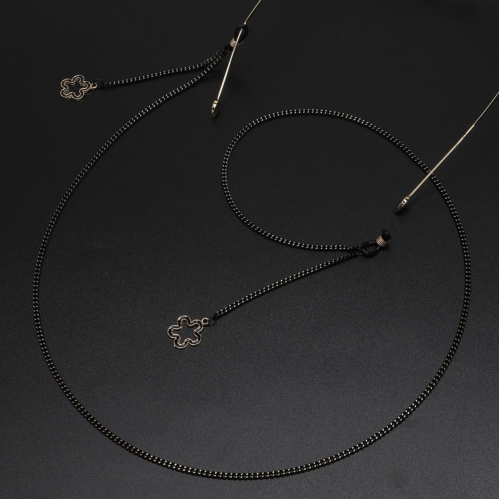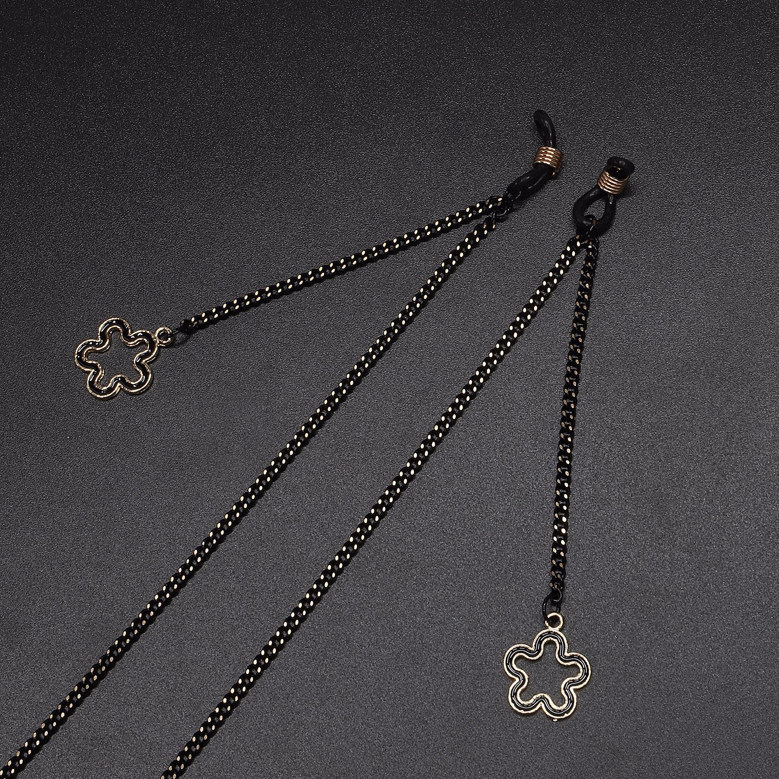 Металлическая нескользящая цепочка черного цвета, с подвеской цветок, для очков и масок GL591
