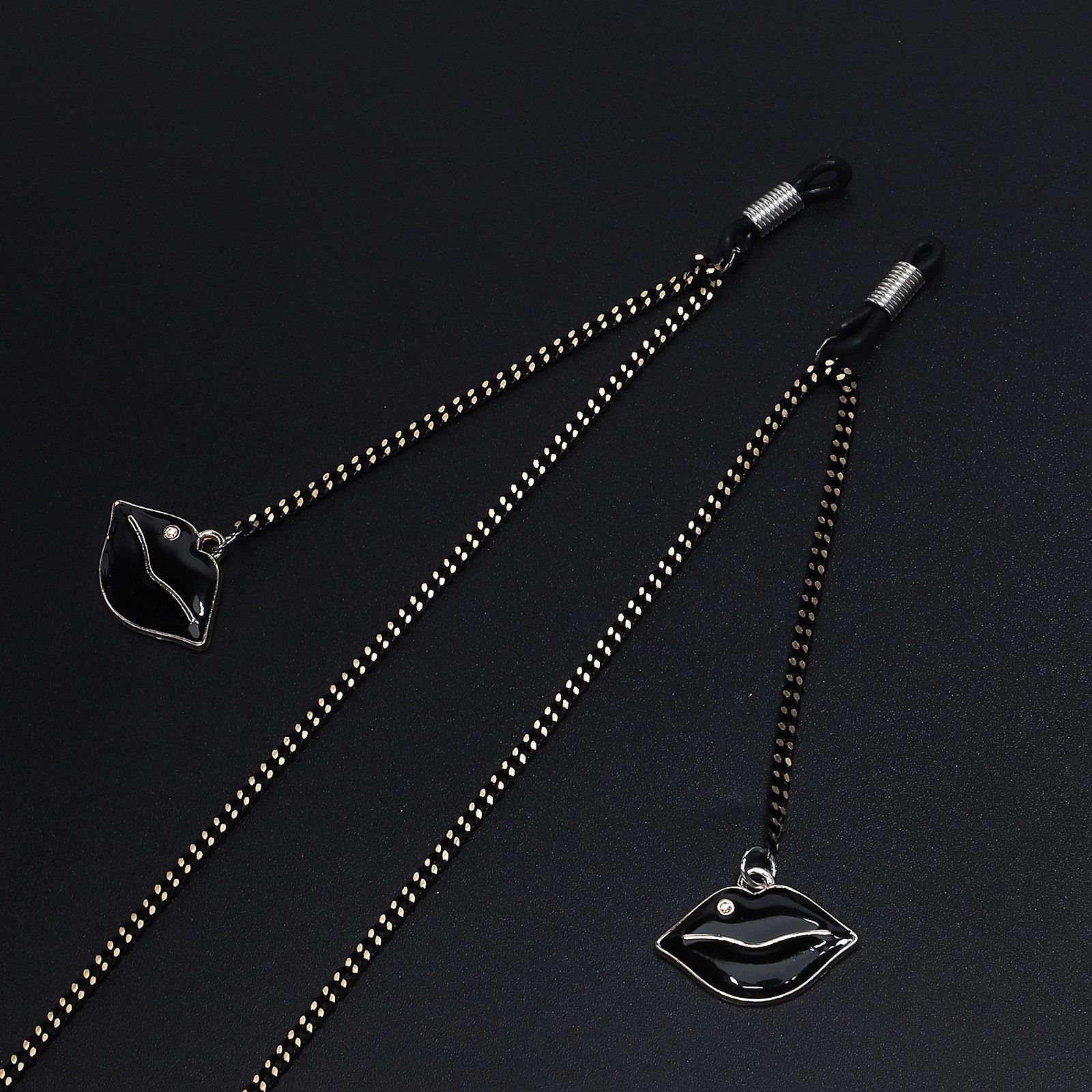 Металлическая нескользящая цепочка черного цвета, с подвеской черные губы, для очков и масок GL595