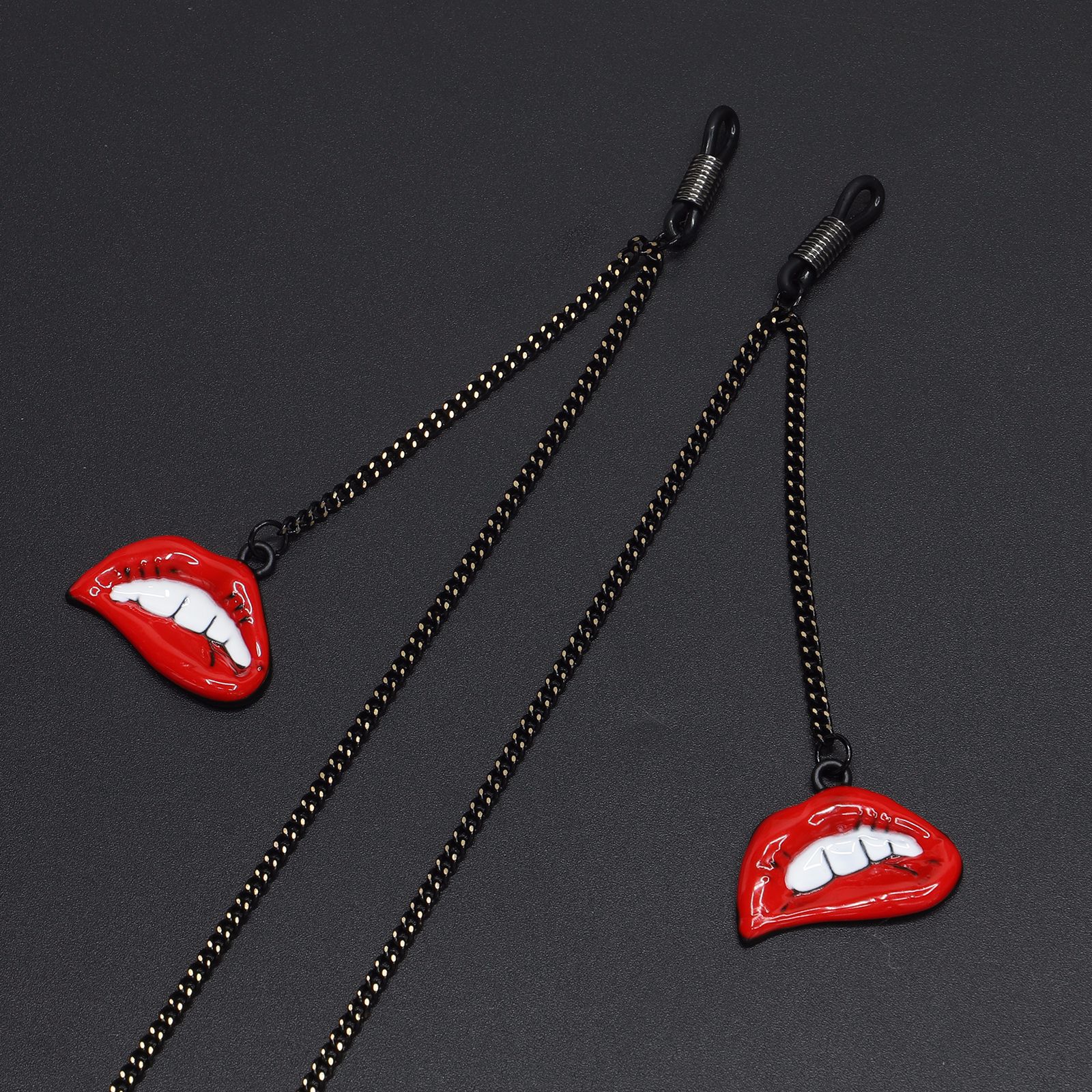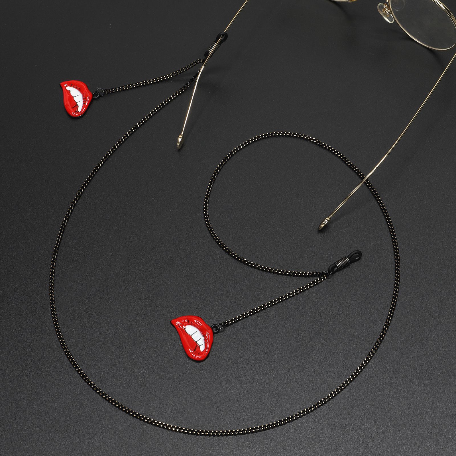 Металлическая нескользящая цепочка черного цвета, с подвеской красные губы, для очков и масок GL626