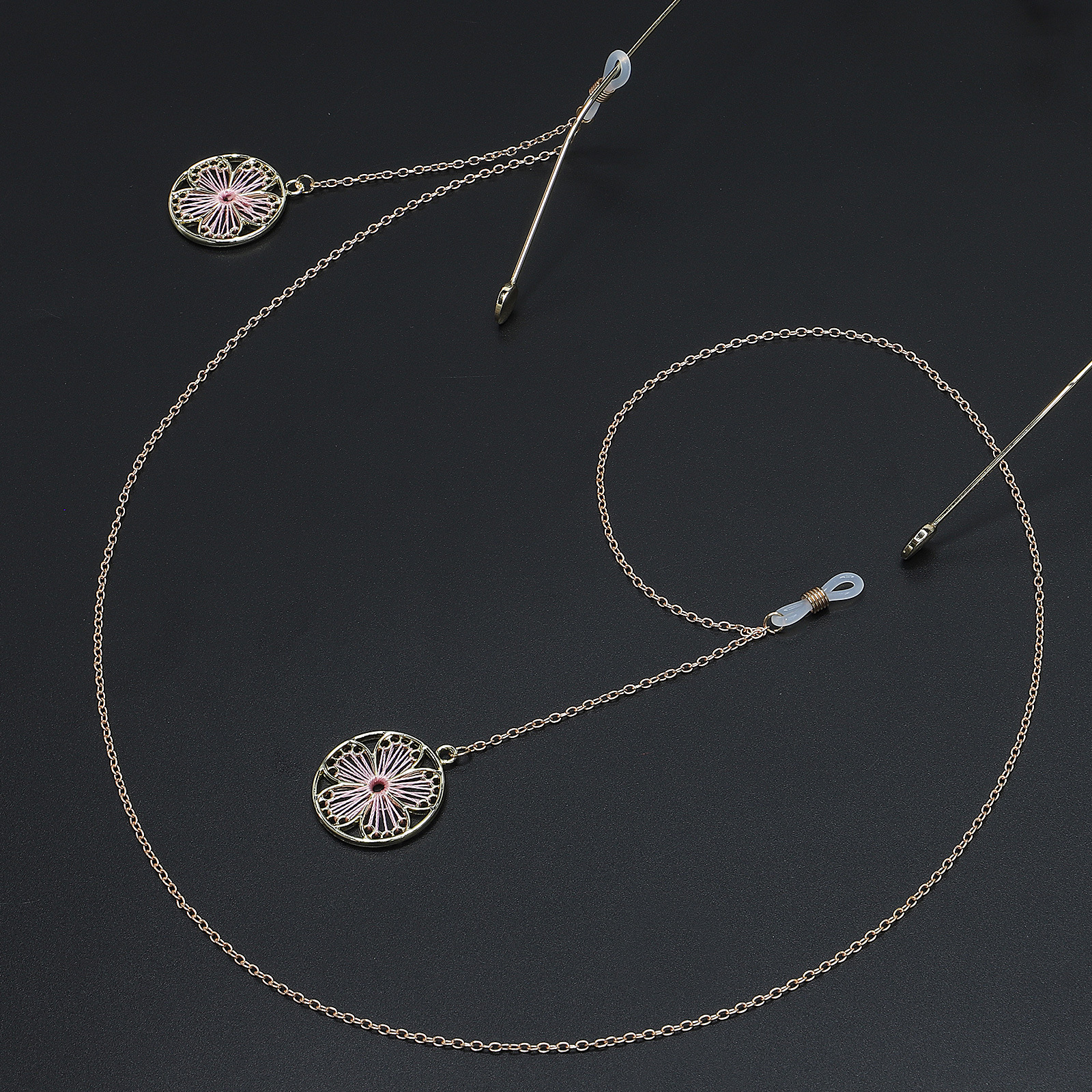 Металлическая нескользящая цепочка золотого цвета, с подвеской в виде цветка, для очков и масок GL638