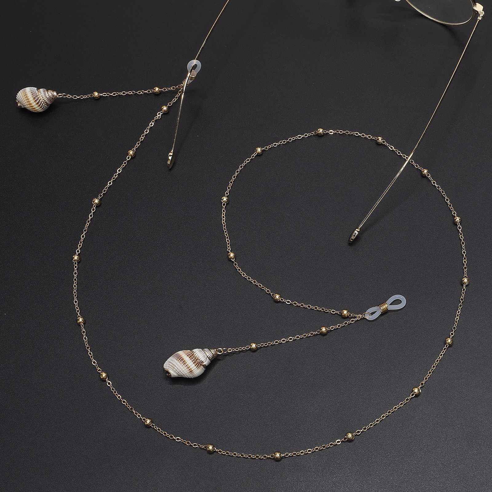 Металлическая нескользящая цепочка золотого цвета, с ракушкой и бусинами, для очков и масок GL659