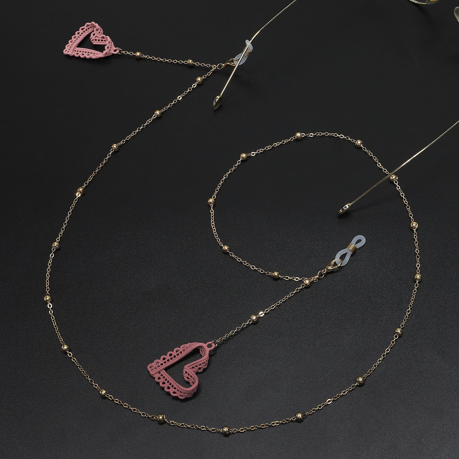 Металлическая нескользящая цепочка золотого цвета, с кружевным сердцем и бусинами, для очков и масок GL666
