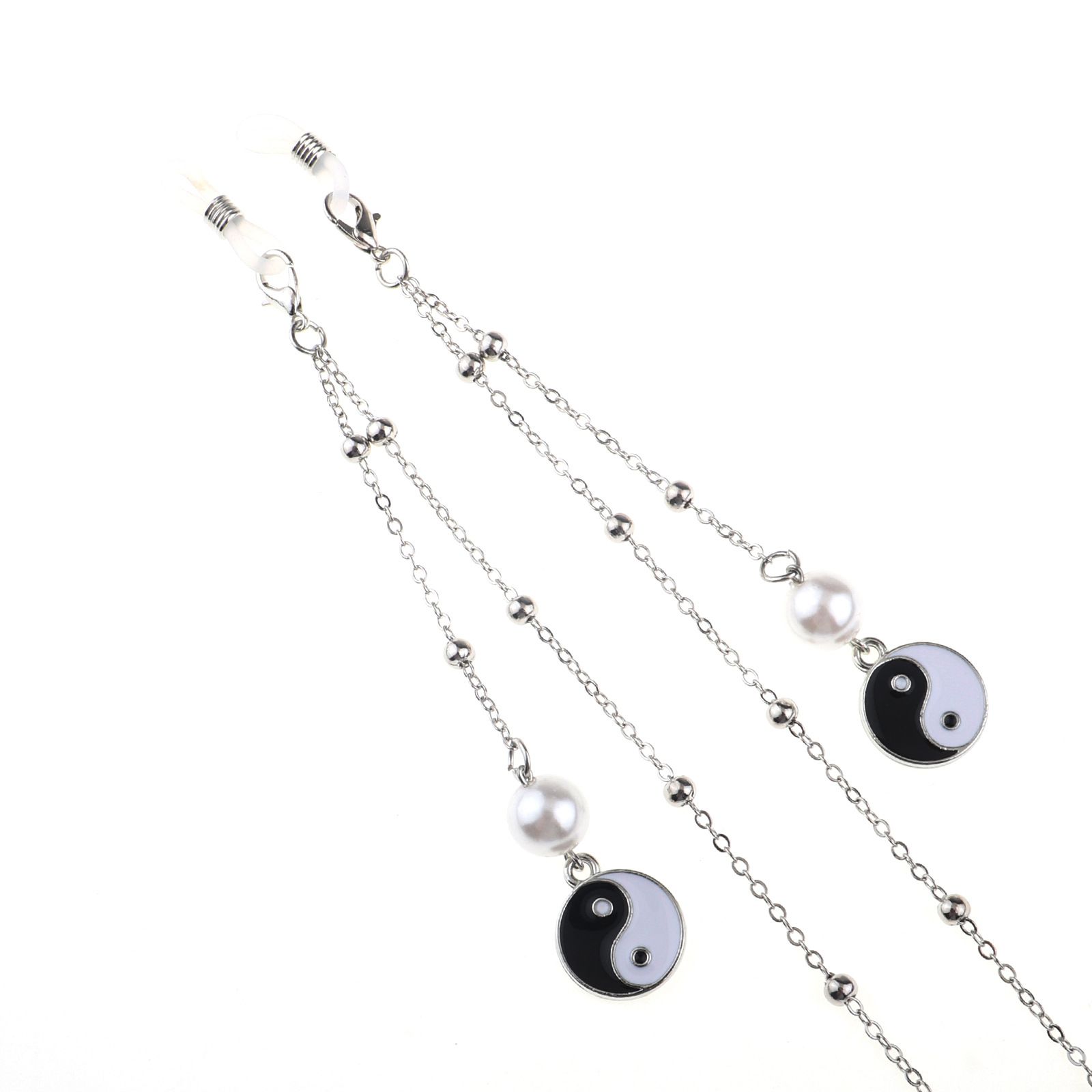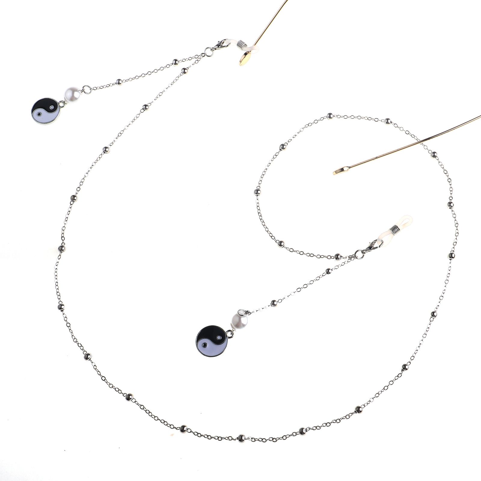 Металлическая нескользящая цепочка серебряного цвета, с черной клипсой, жемчужиной и бусинами, для очков и масок GL783