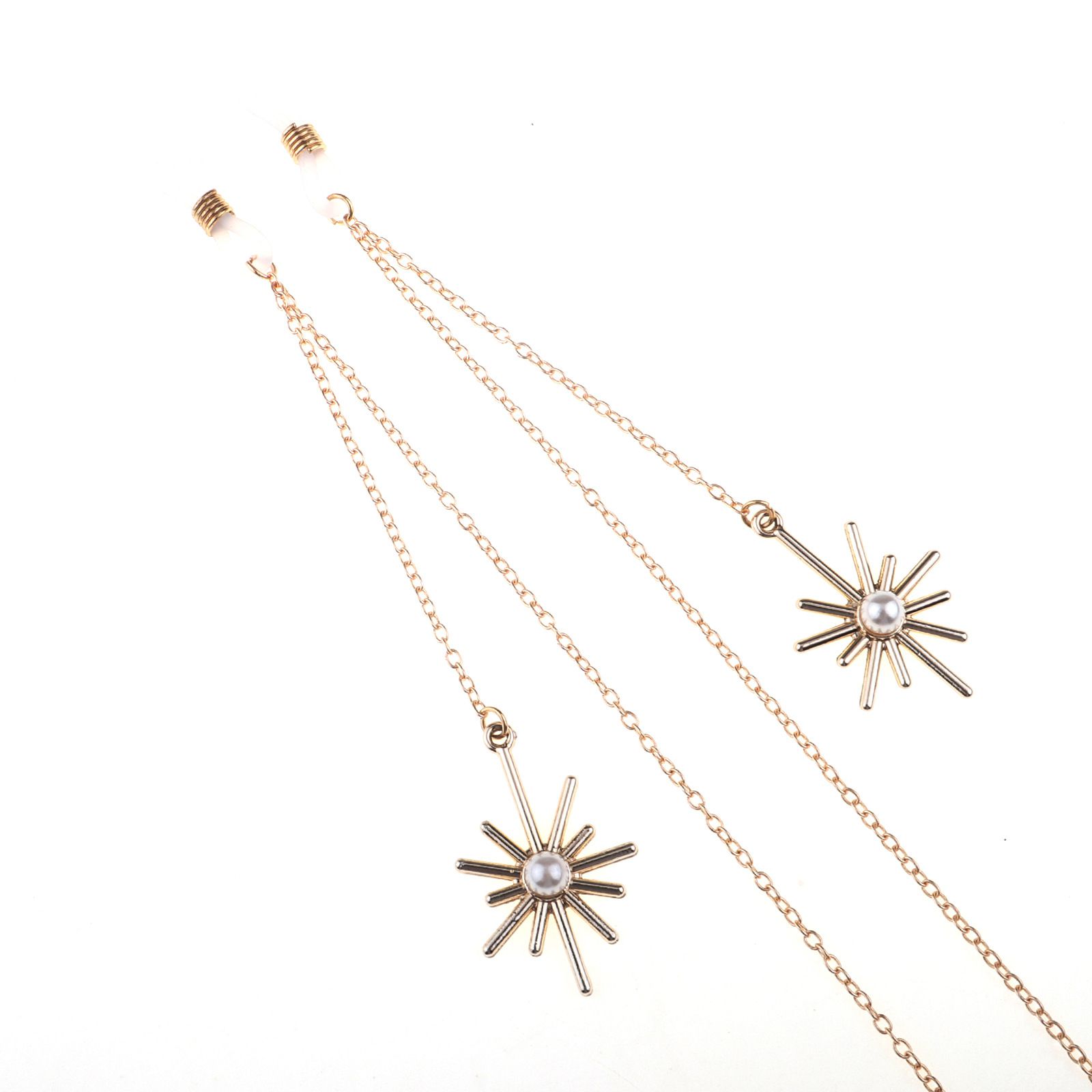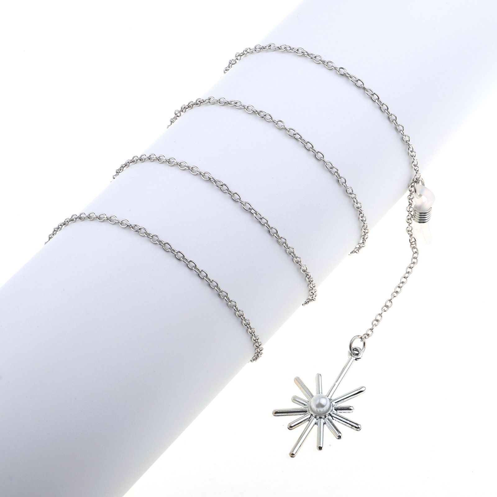 Металлическая нескользящая цепочка, с подвеской снежинка с жемчугом, для очков и масок GL788