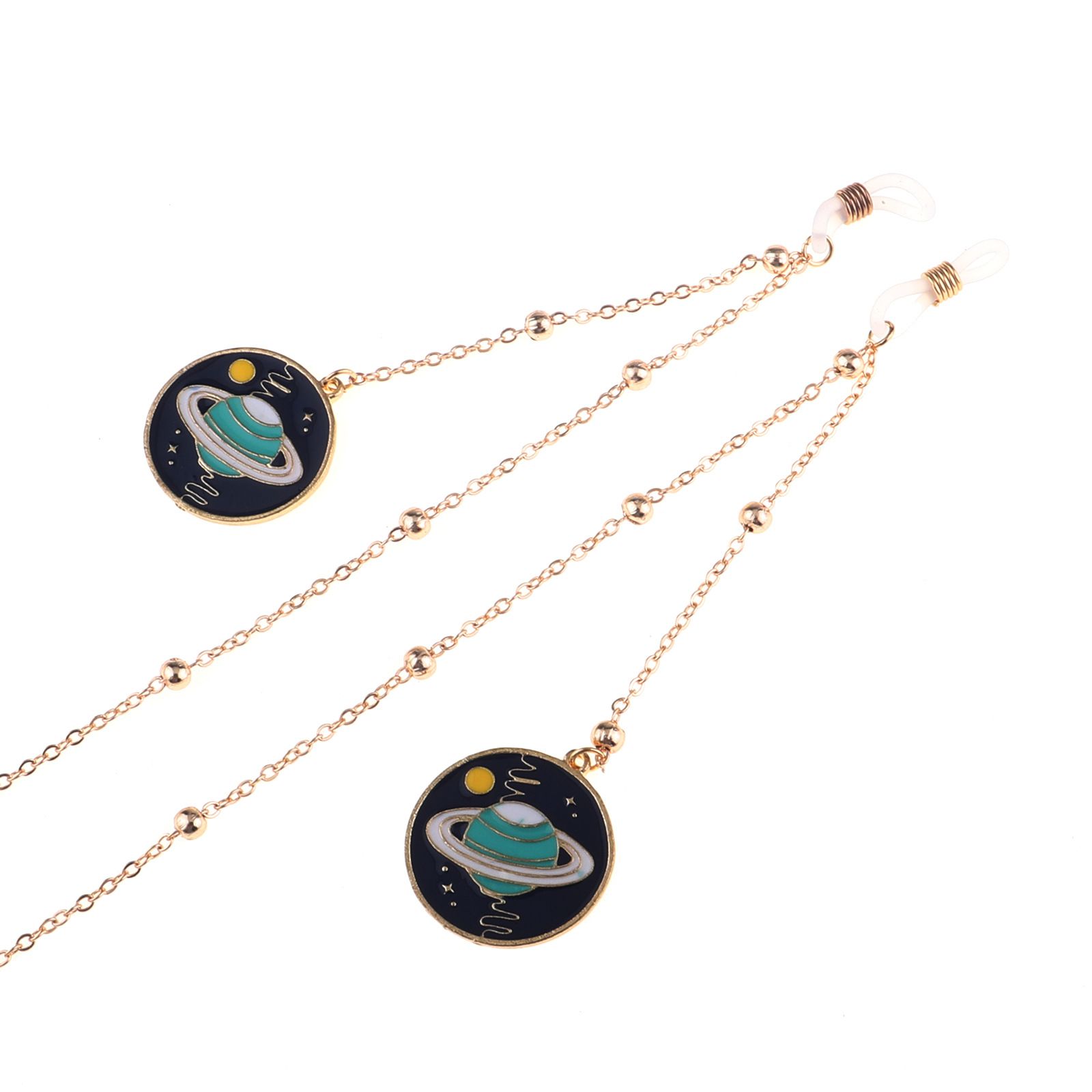 Металлическая нескользящая цепочка золотого цвета, с подвеской планета и бусинами, для очков и масок GL805