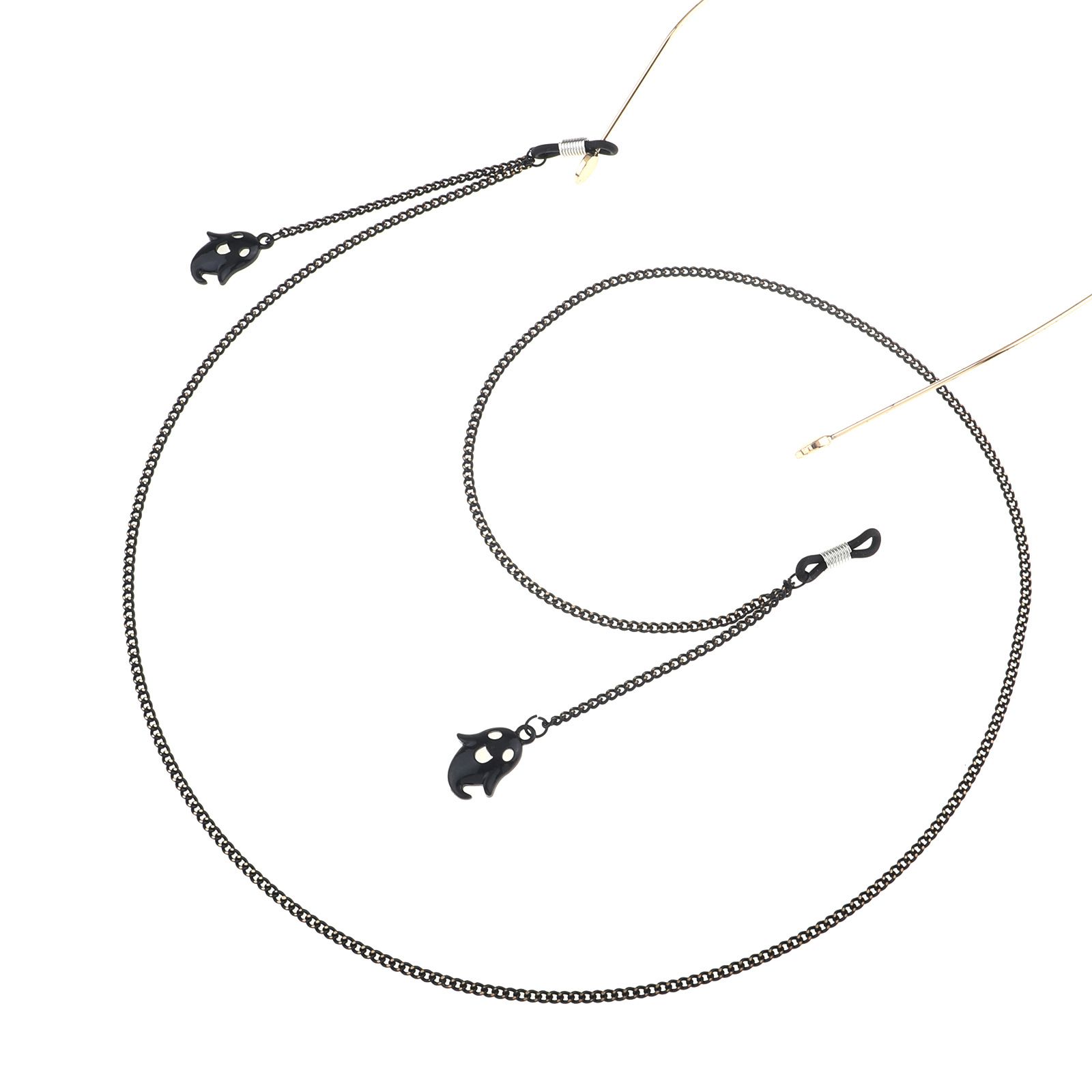 Металлическая нескользящая цепочка черного цвета, с подвеской черный ангел, для очков и масок GL834