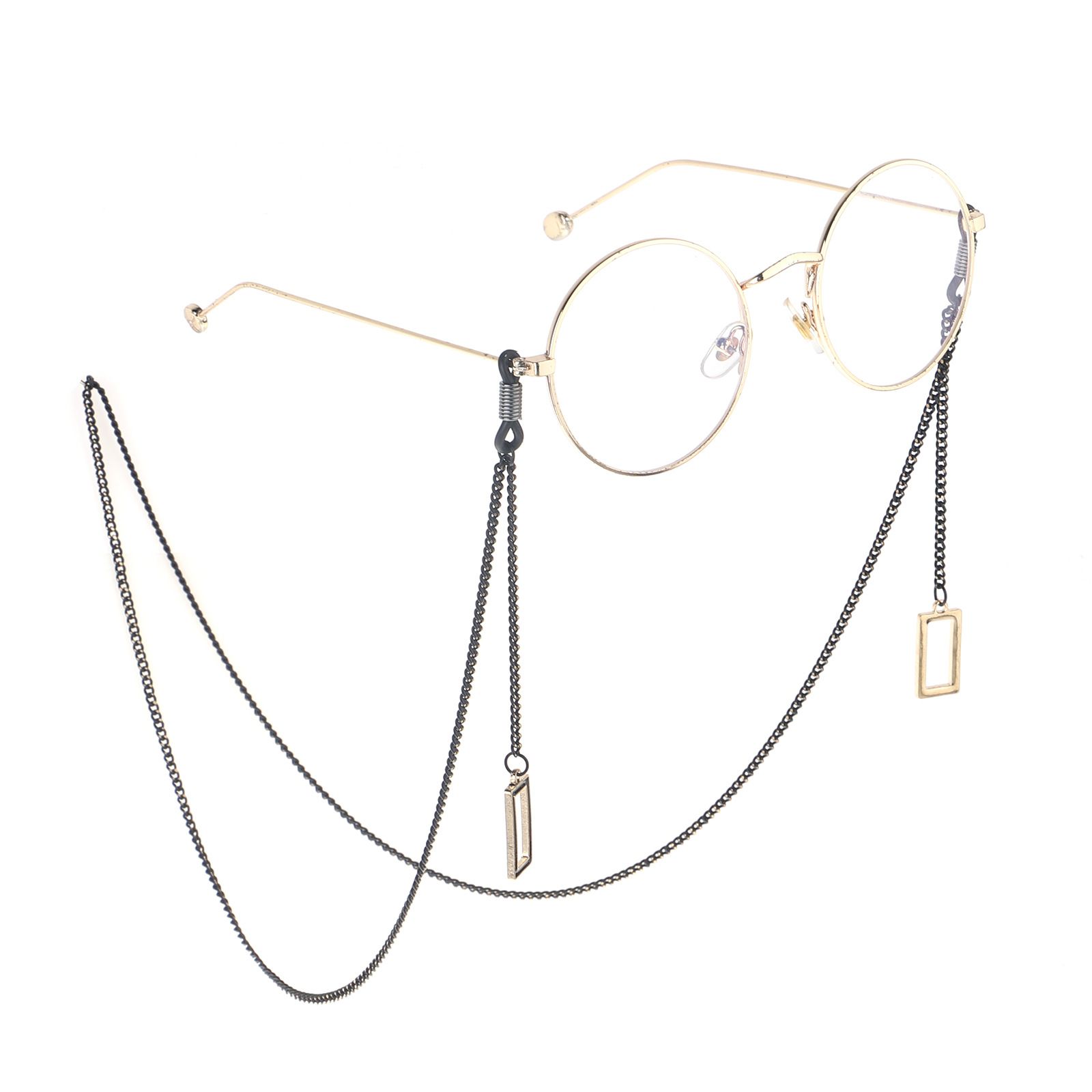 Металлическая нескользящая цепочка черного цвета, с подвеской прямоугольник, для очков и масок GL856