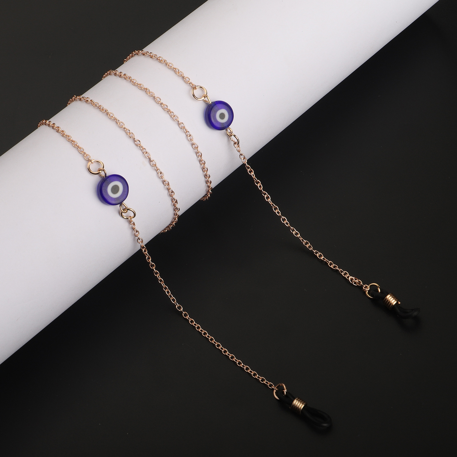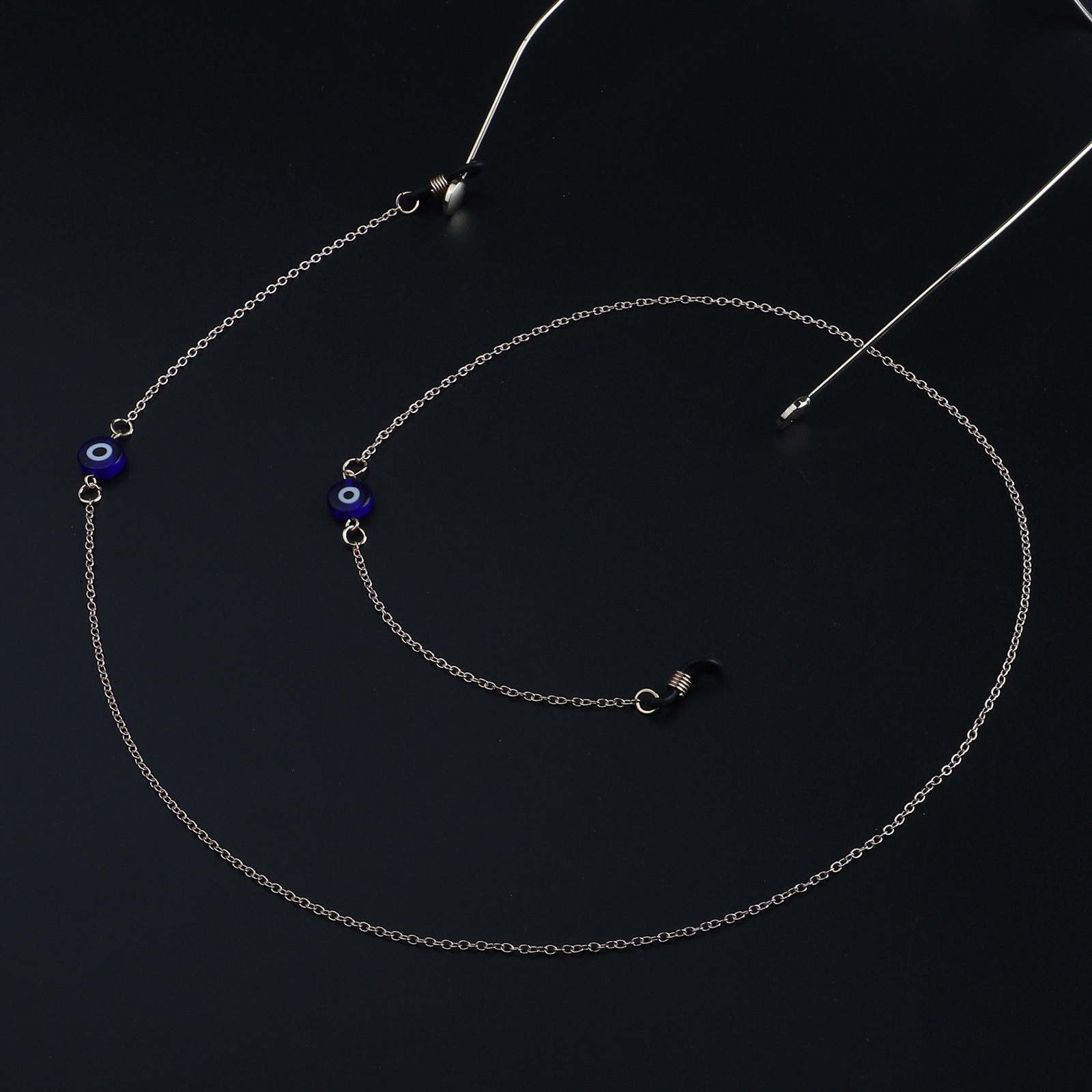 Металлическая нескользящая цепочка золотого цвета, с голубыми бусинами, для очков и масок GL873