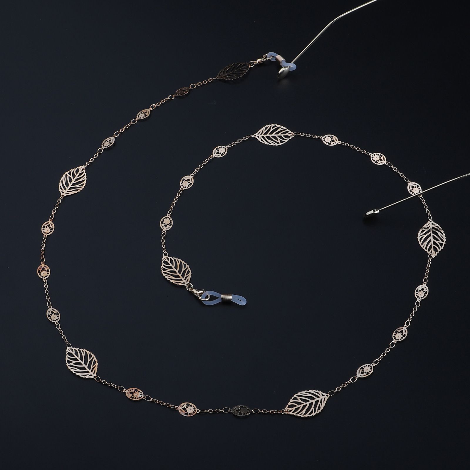 Металлическая нескользящая цепочка, с золотыми полыми листьями, для очков и масок GL884