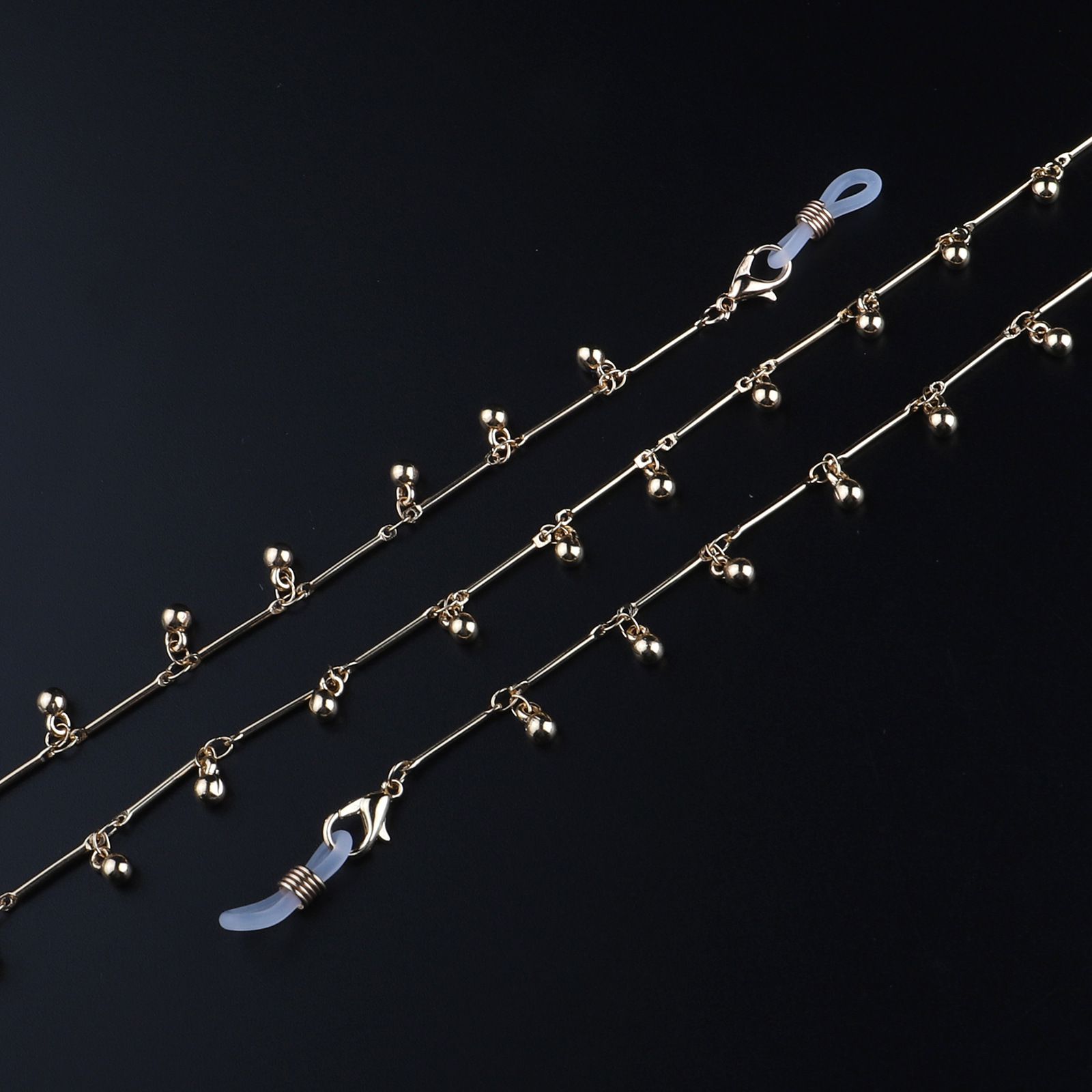 Металлическая нескользящая цепочка золотая, с бусинами, для очков и масок GL935