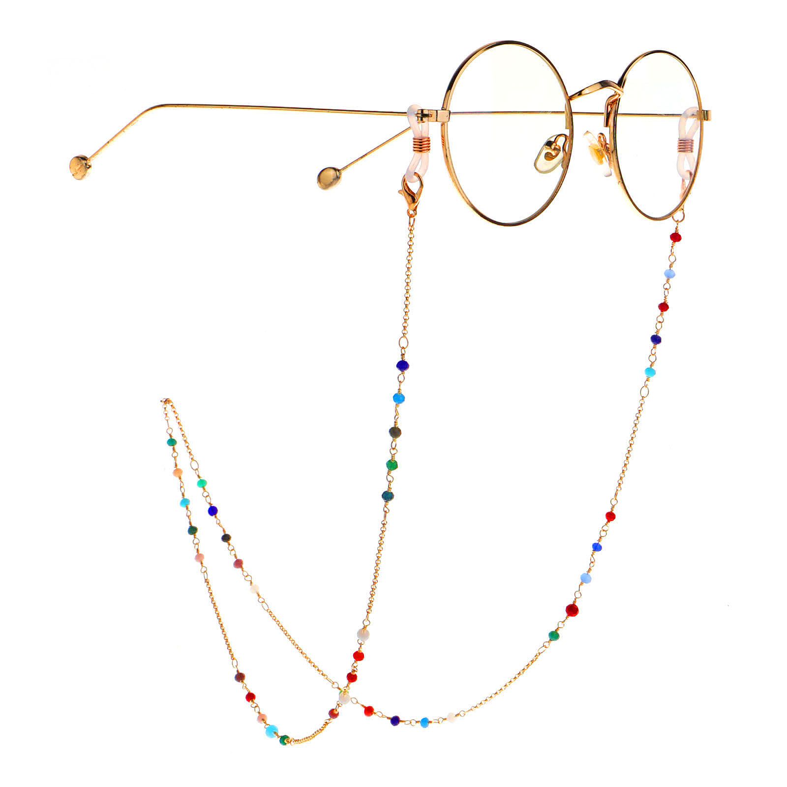 Металлическая нескользящая цепочка золотая, с цветными кристаллами, для очков и масок GL986