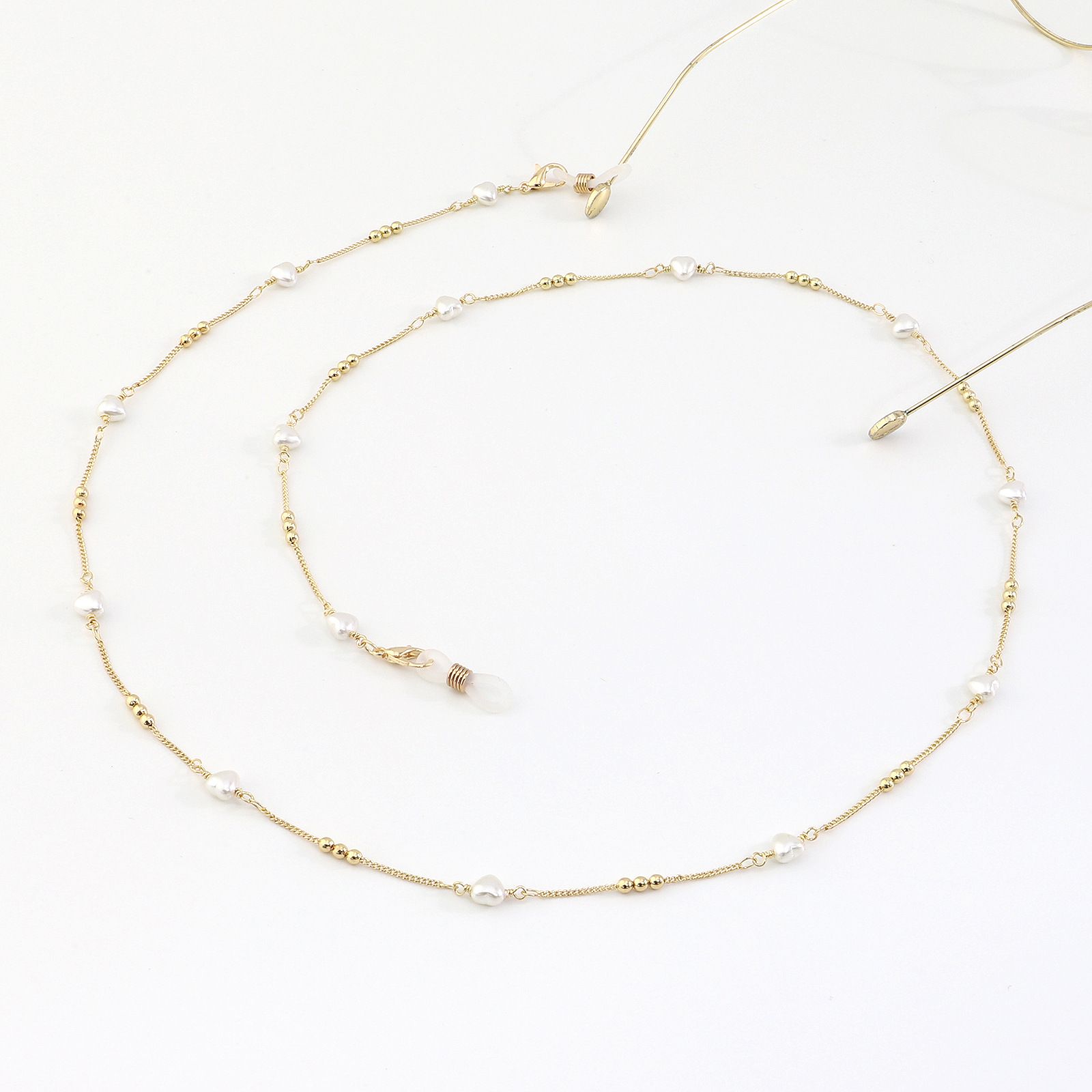 Металлическая нескользящая цепочка золотого цвета, с жемчужным сердцем и медными бусинами, для очков и масок GL991