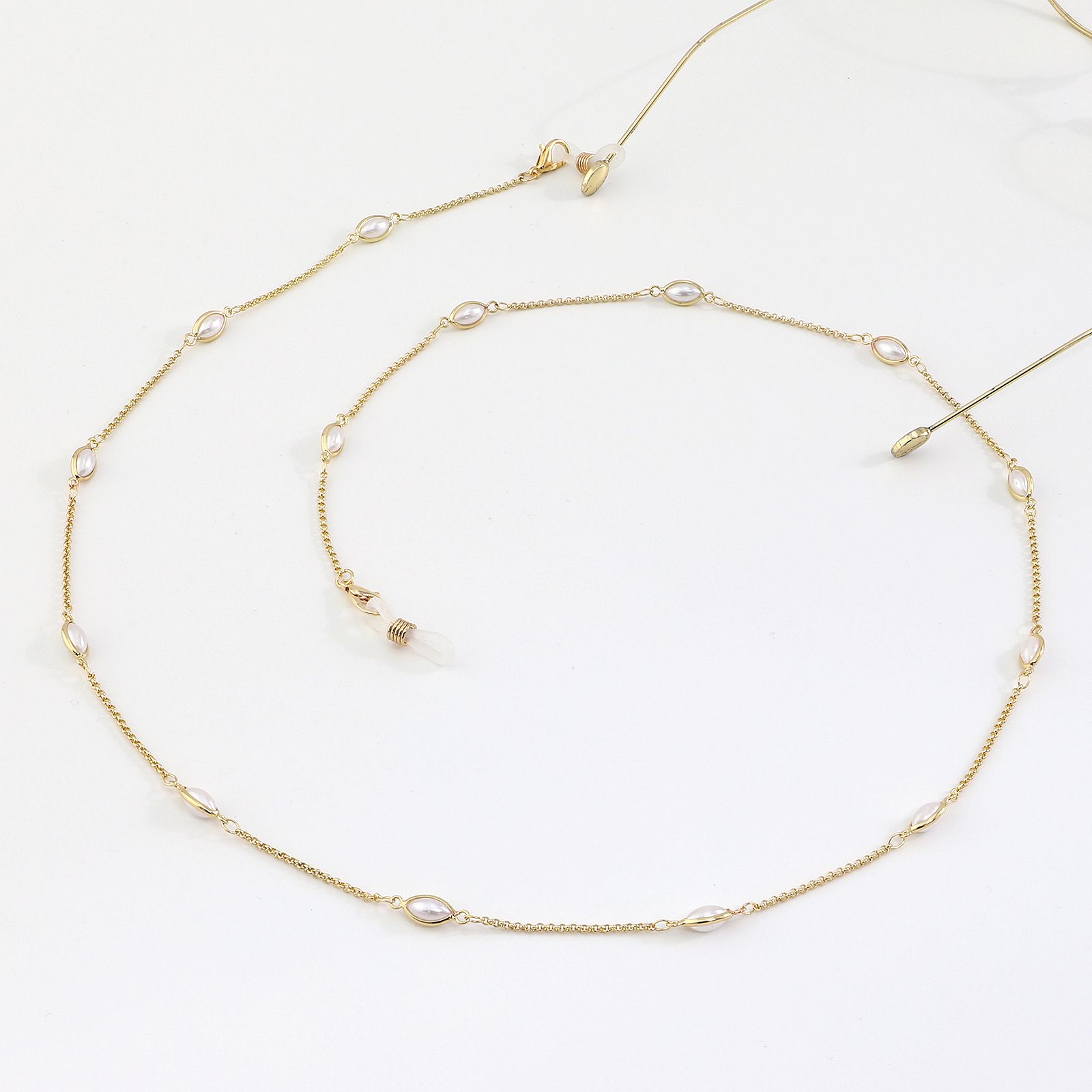 Металлическая нескользящая цепочка золотого цвета, с овальным жемчугом, для очков и масок GL992
