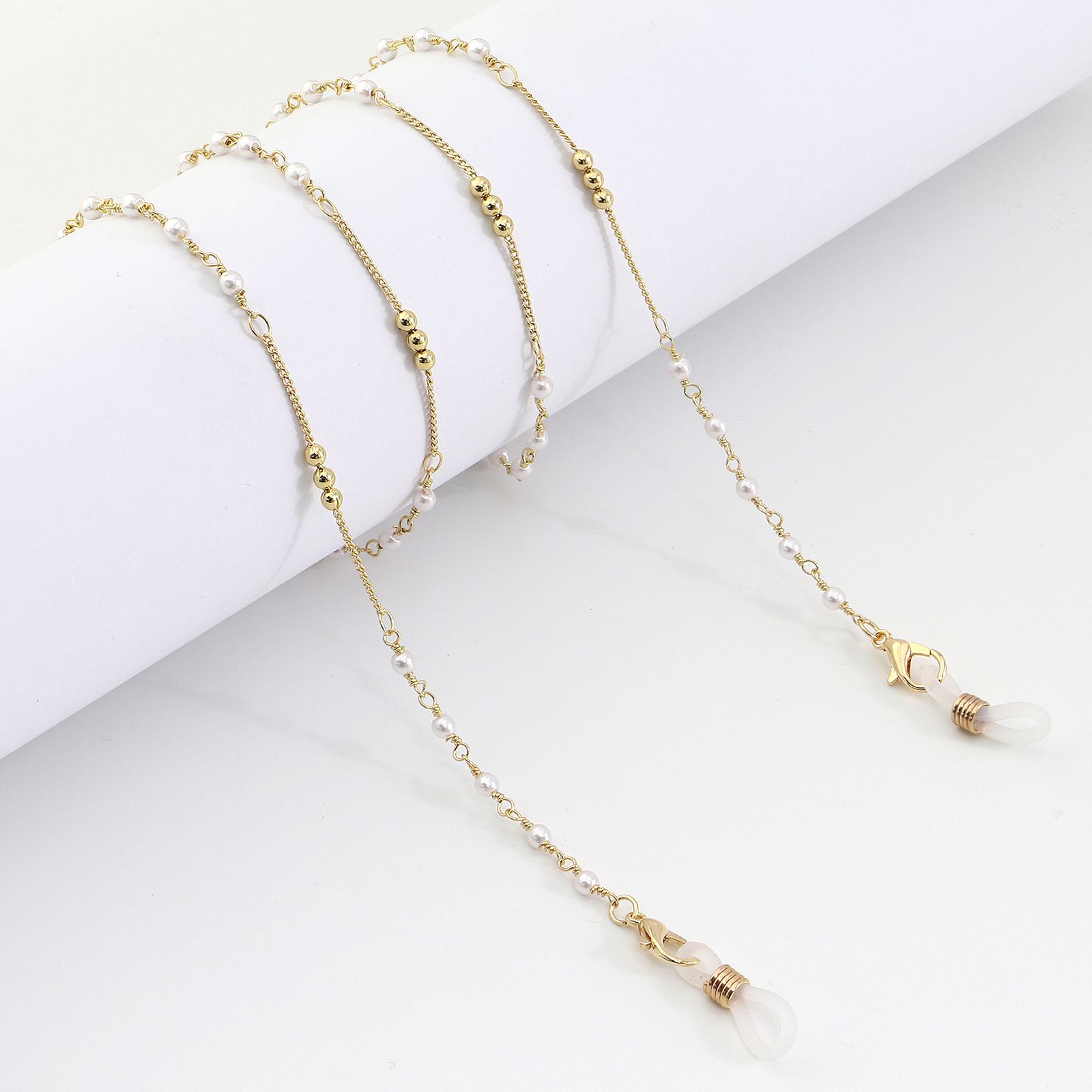 Металлическая нескользящая цепочка золотая, с медными и жемчужными бусинами, для очков и масок GL993