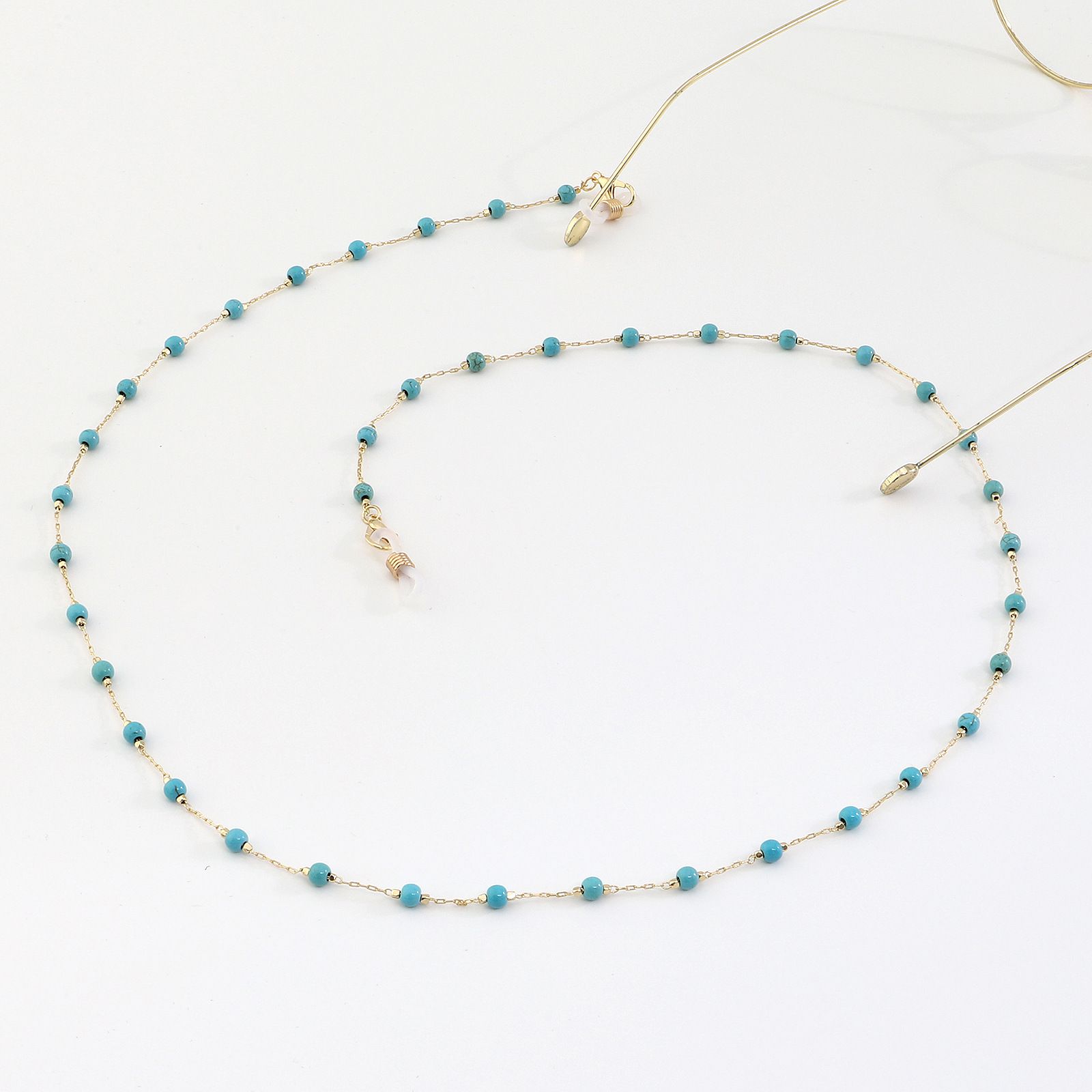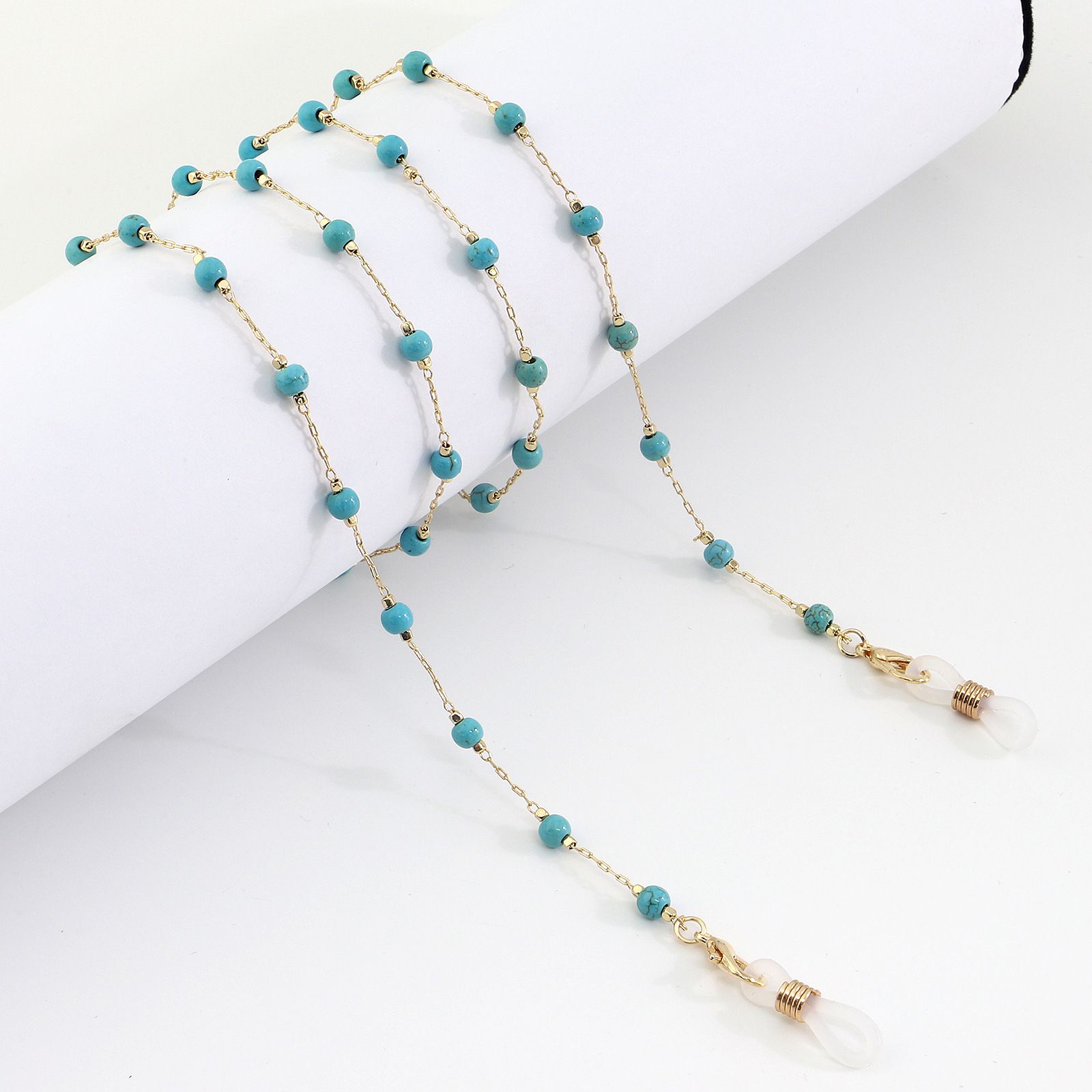 Металлическая нескользящая цепочка золотого цвета, с круглыми бирюзовыми бусинами, для очков и масок GL997