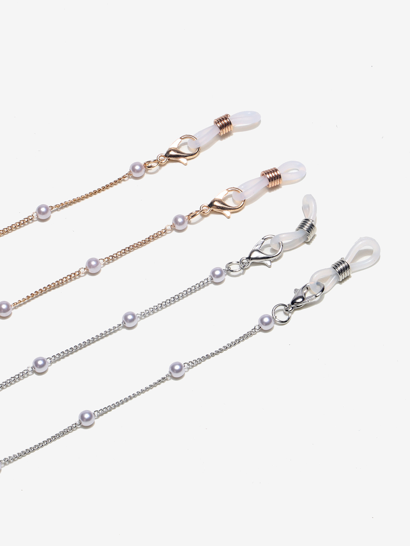 Цепочка для очков с жемчугом, комплект из двух штук, золотая и серебряная GM025