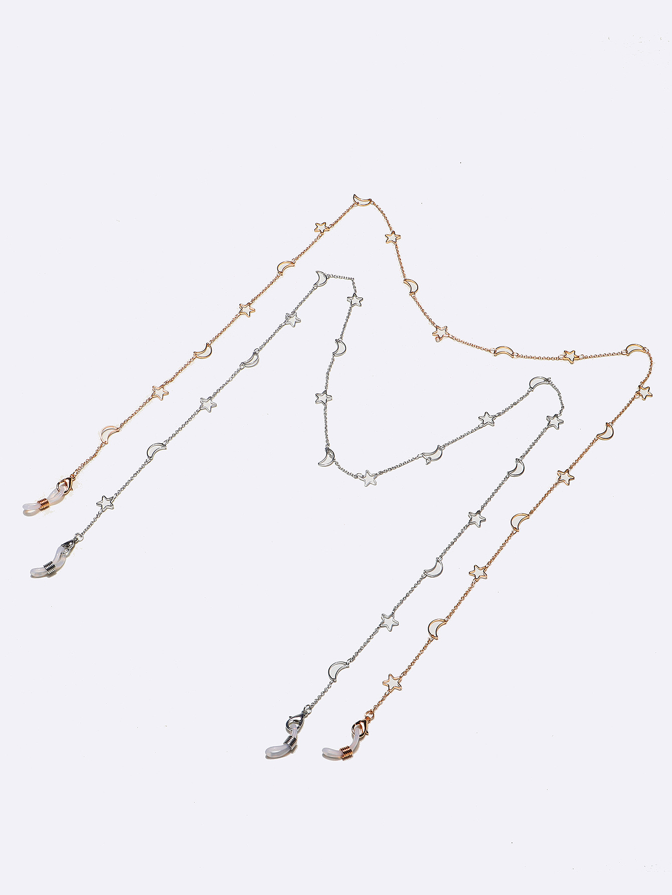 Набор из двух золотых и серебряных цепочек для очков с полыми лунами и звездами GM063(1)