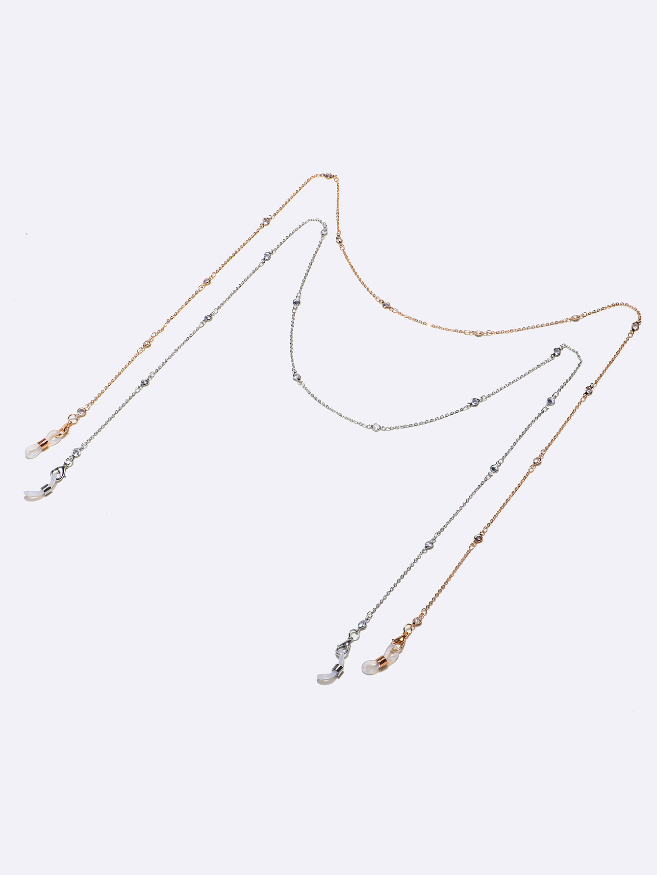 Набор из двух цепочек для очков, золотая и серебряная с цирконом GM076