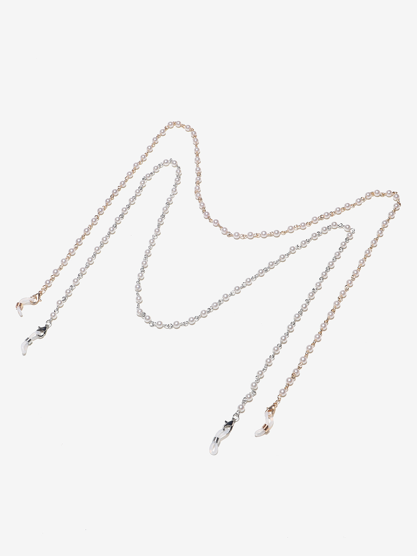Набор из двух золотых и серебряных цепочек для очков с жемчугом 5мм GM081
