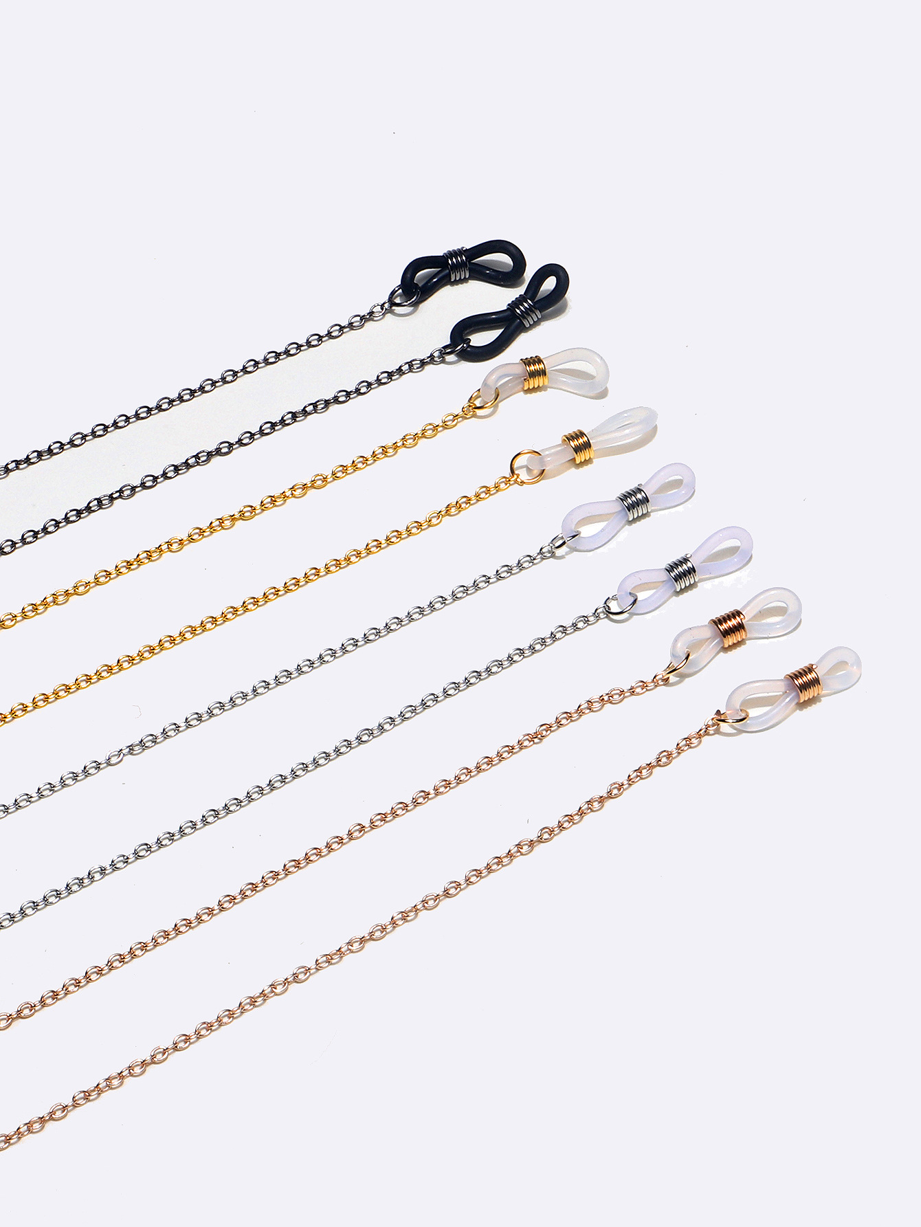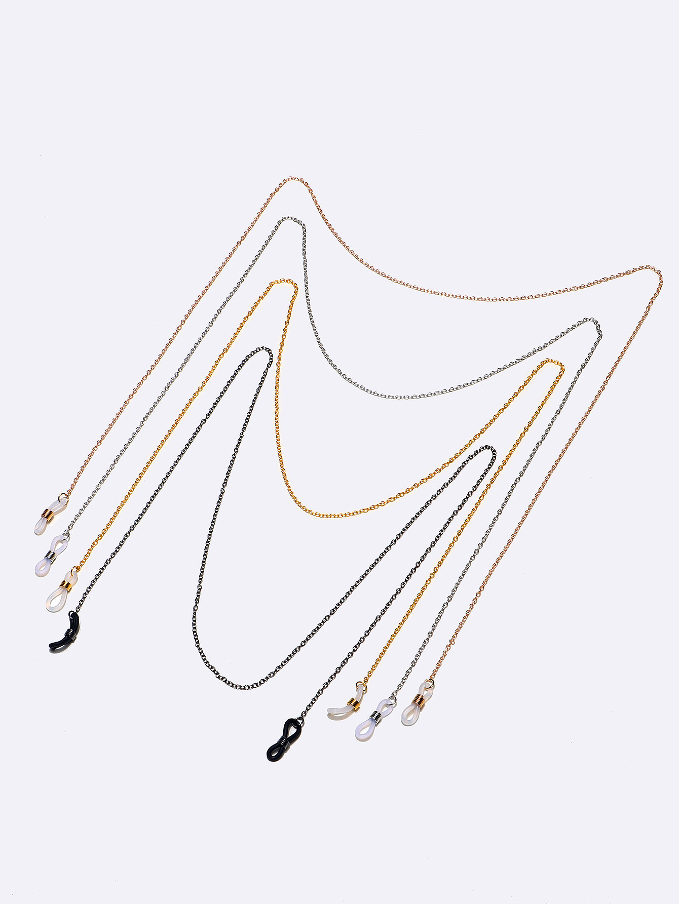 Набор из четырех золотых, серебряных и черных цепочек для очков GM099