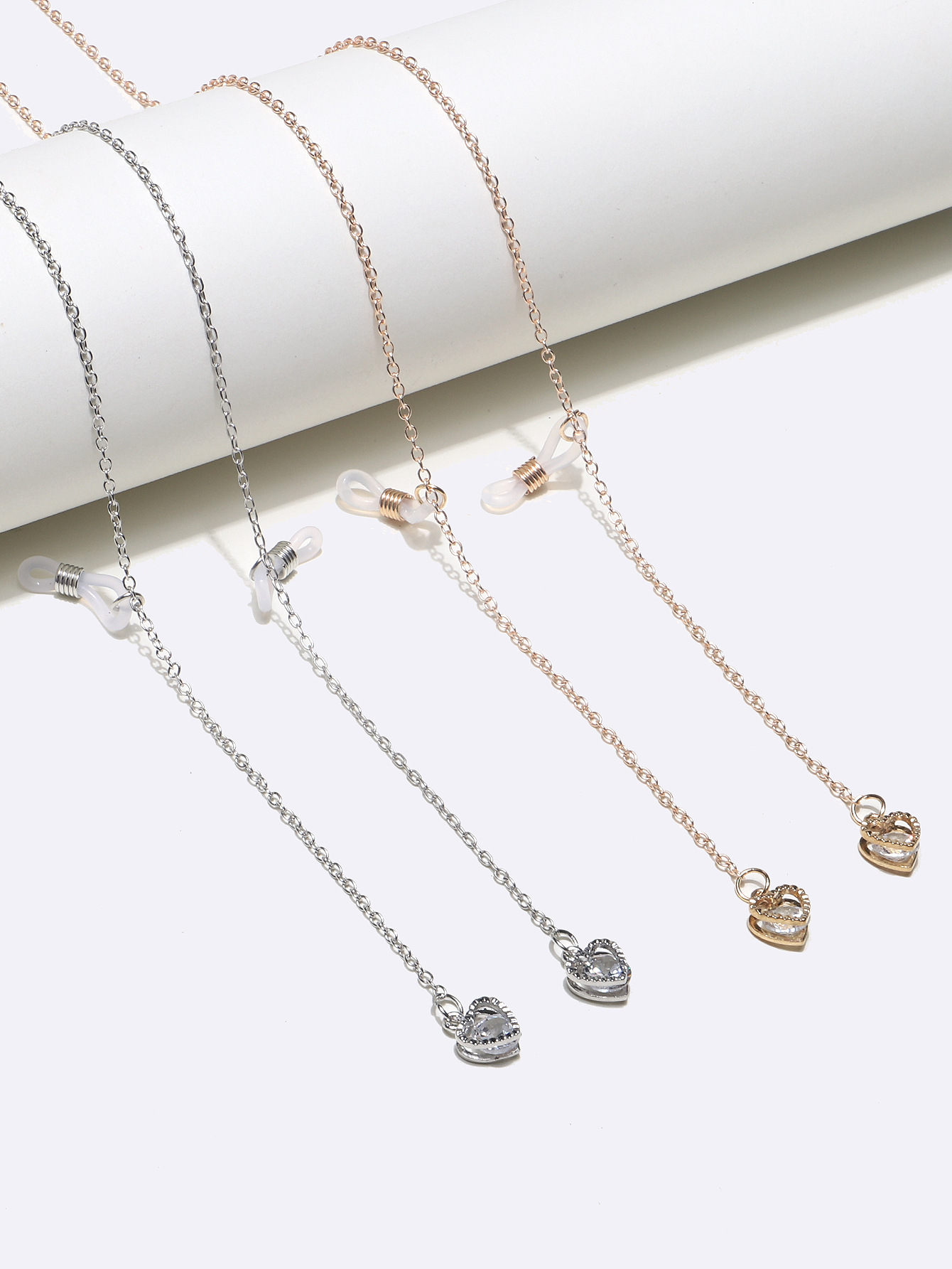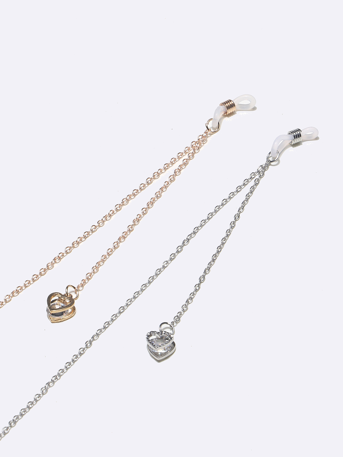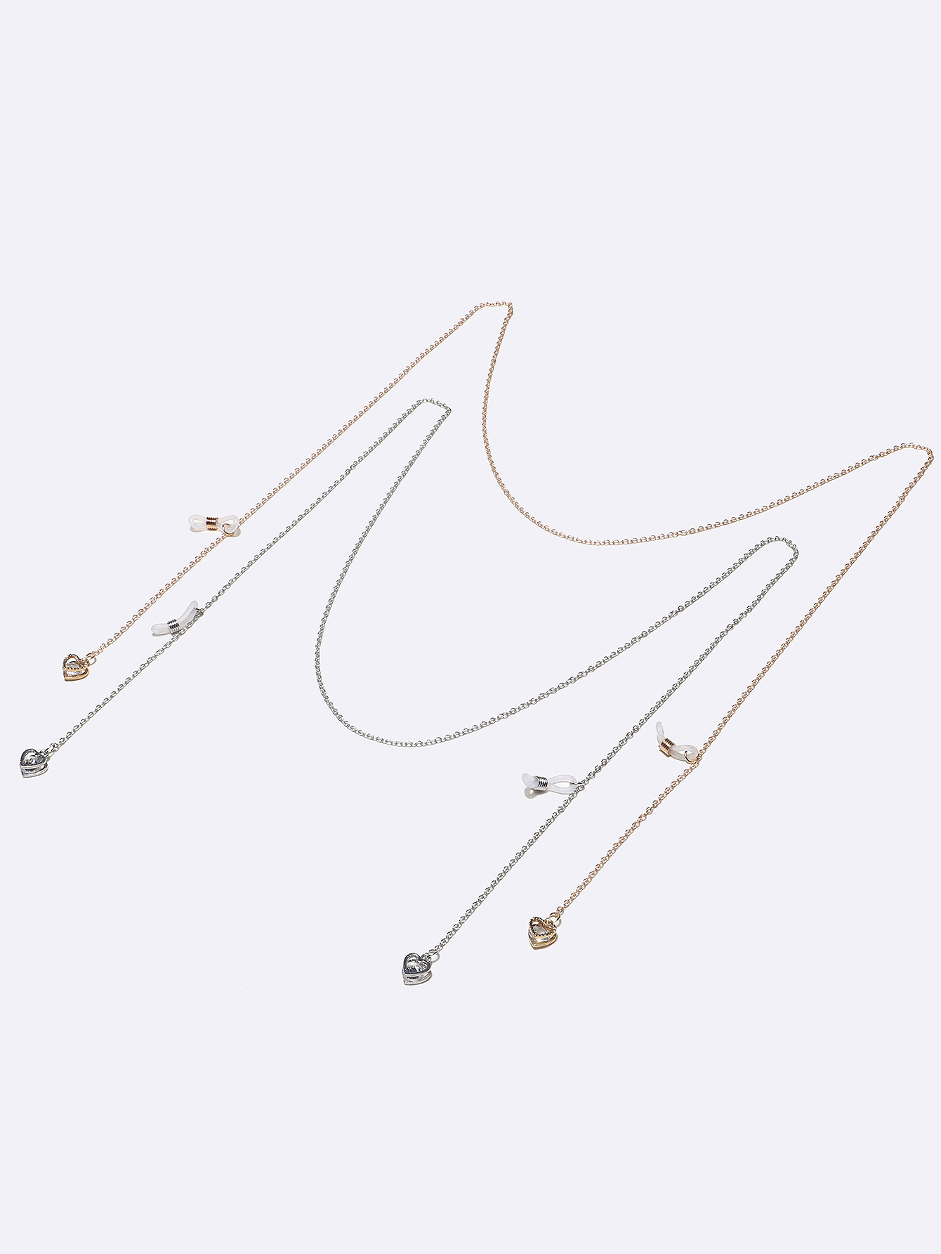 Набор из двух золотых и серебряных цепочек для очков с сердечками GM114