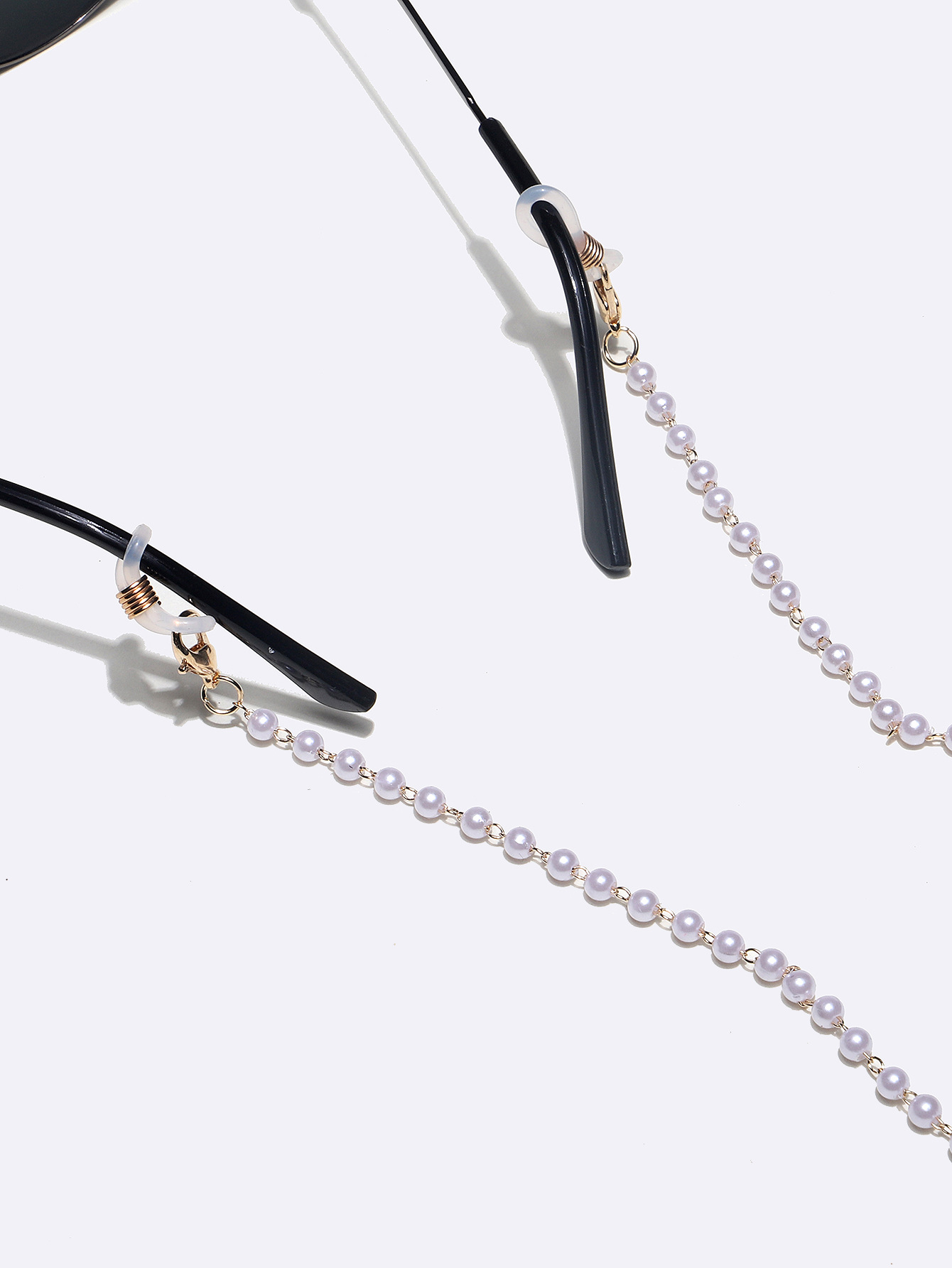 Набор из двух золотых цепочек для очков с черным и белым жемчугом GM119