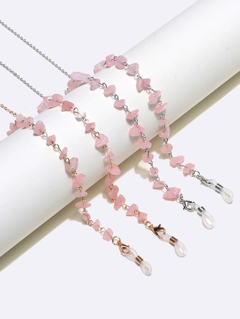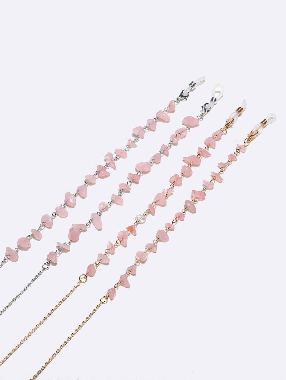 Набор из двух золотых и серебряных цепочек для очков с натуральными розовыми кристаллами GM129
