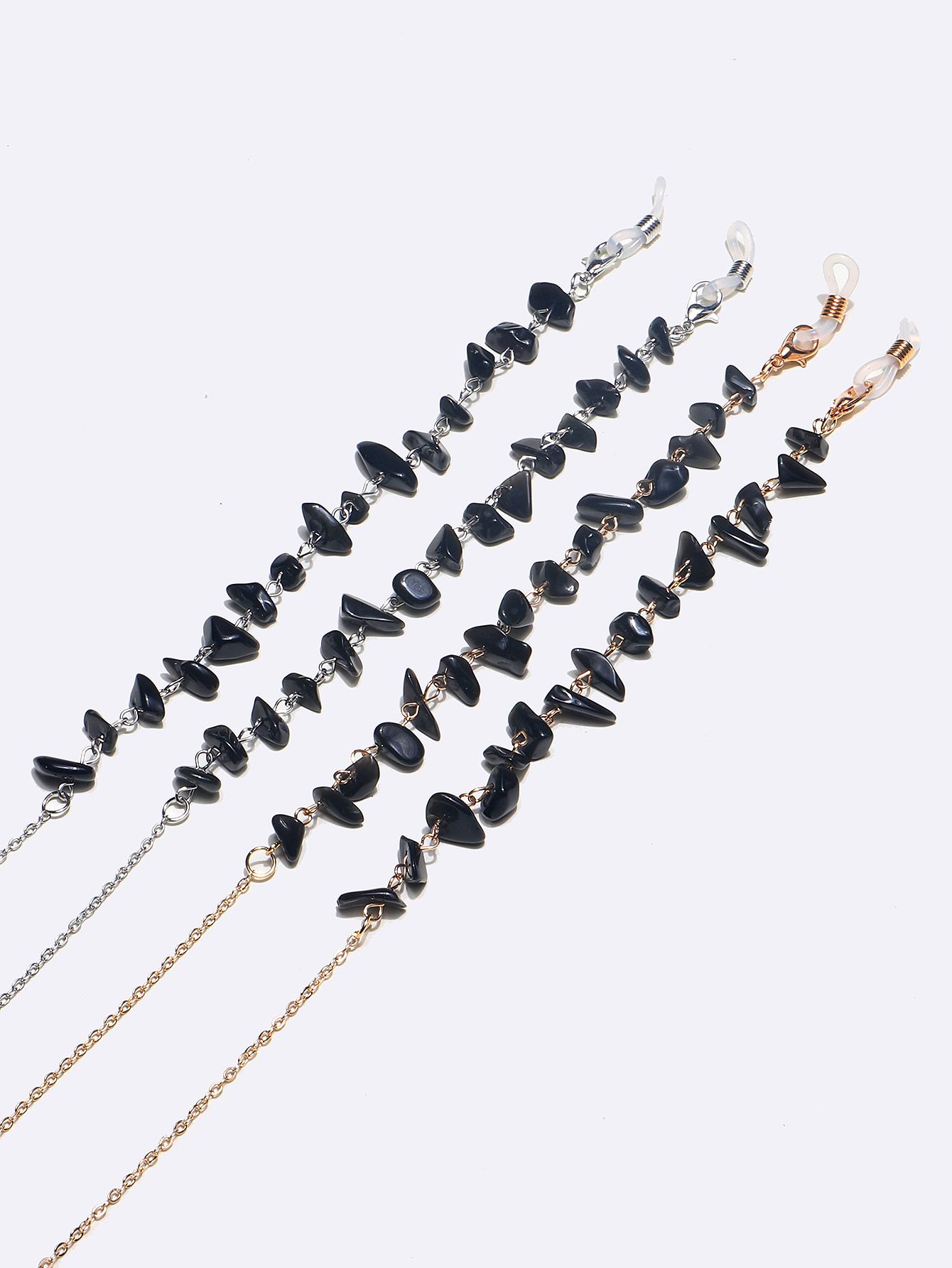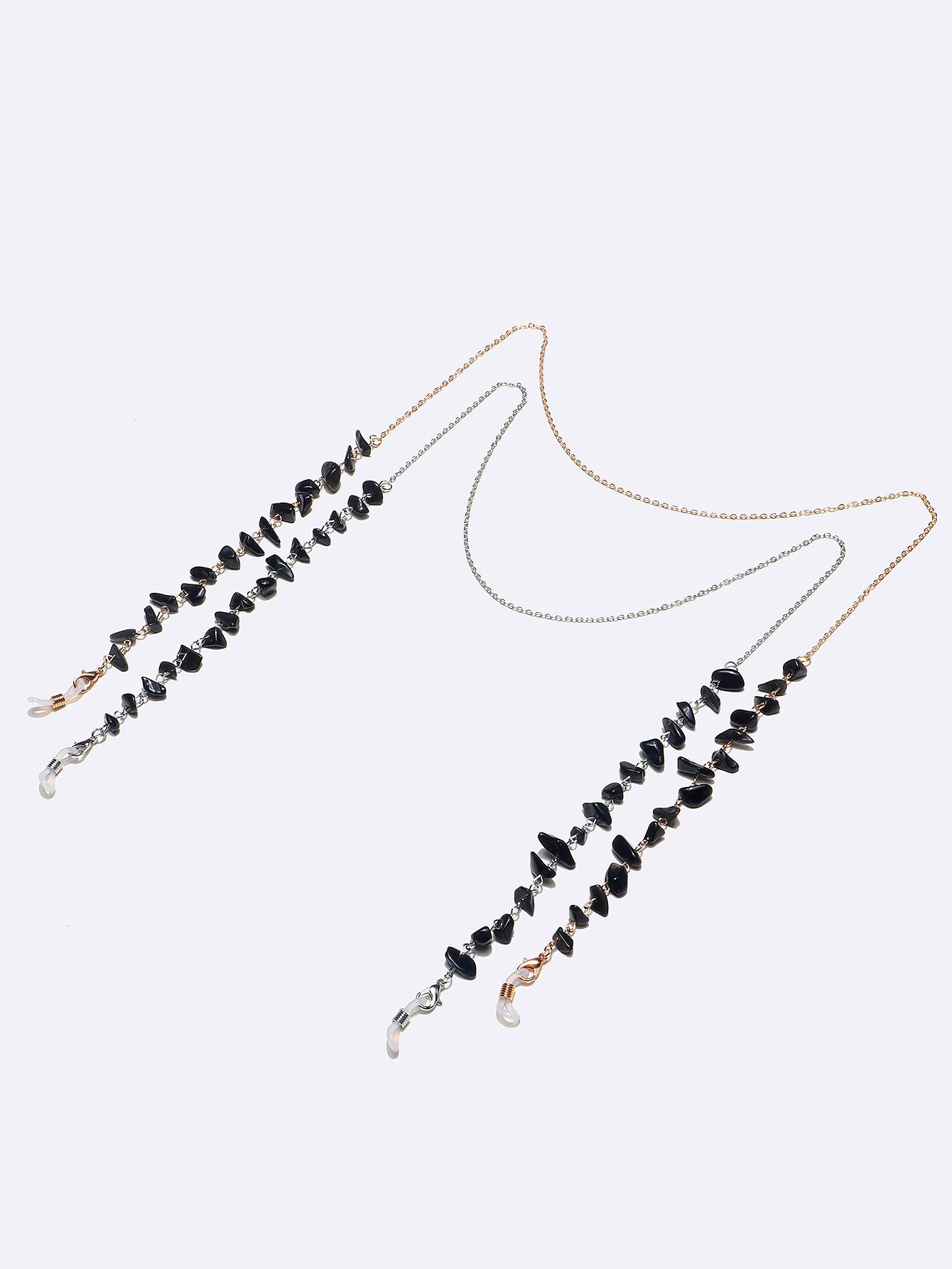 Комплект из 2-х металлических нескользящих цепочек, с черным камнем, для очков и масок GM130