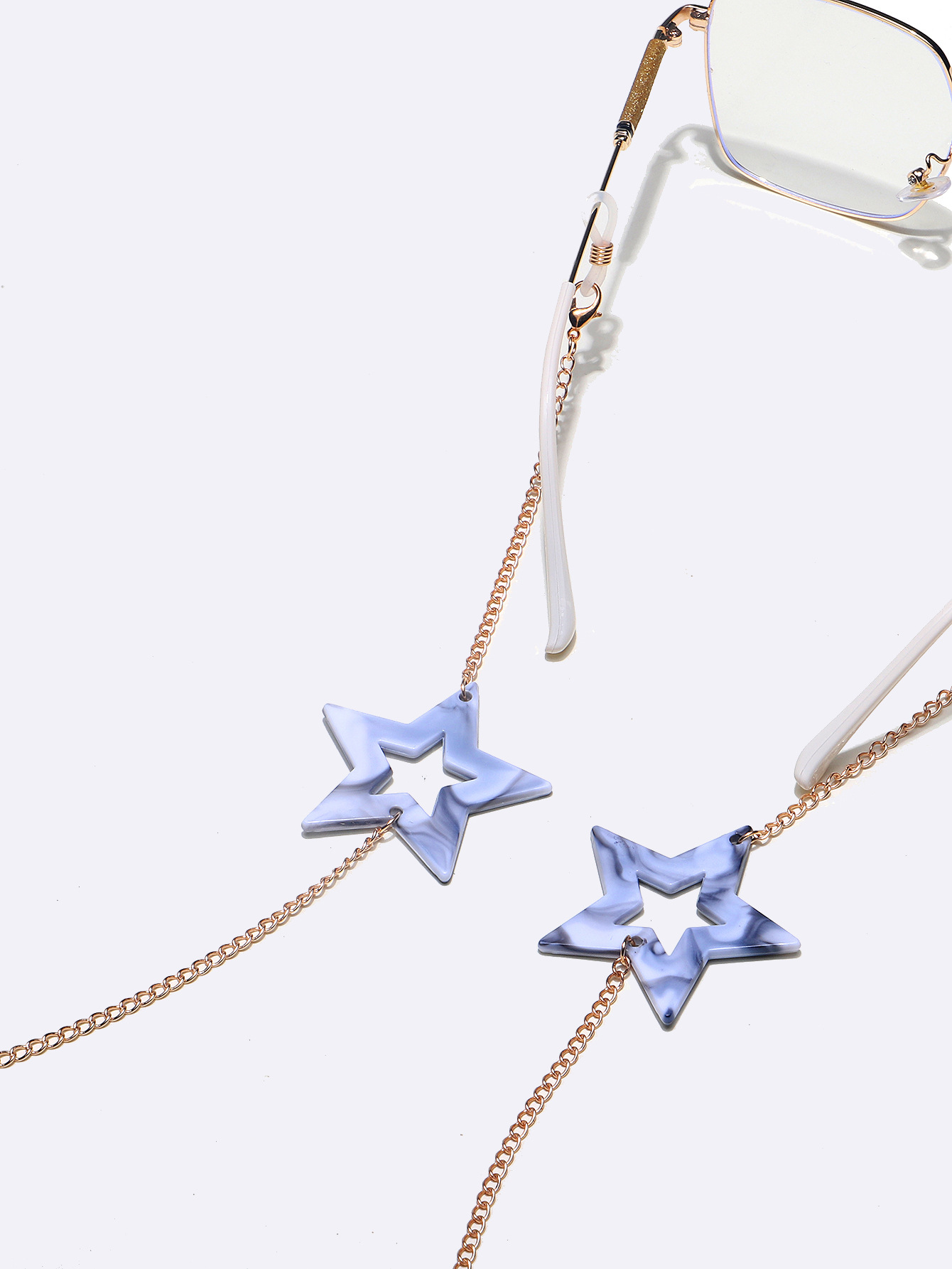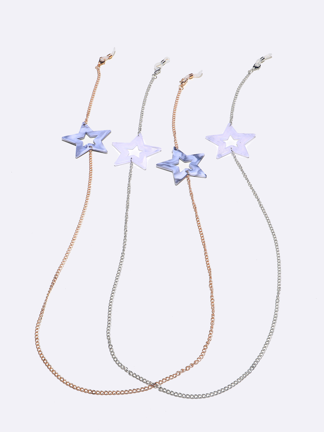 Набор из двух металлических золотых и серебряных цепочек для очков с акриловыми звездами GM149