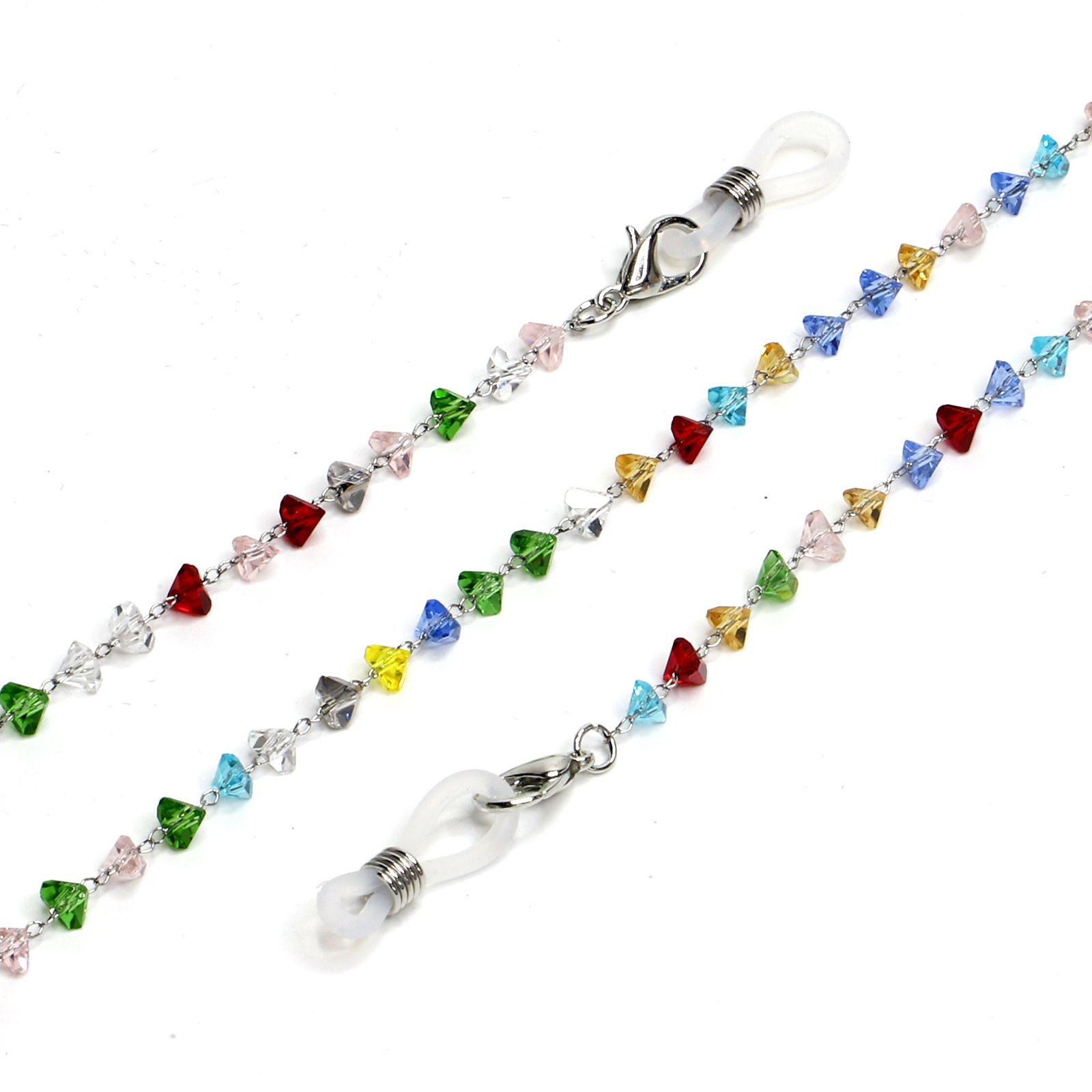 Металлическая нескользящая цепочка, с цветными кристаллами, для очков и масок GS037
