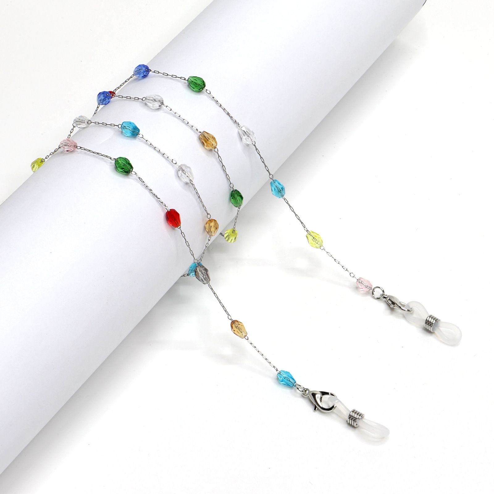 Металлическая нескользящая цепочка серебряного цвета, с цветными овальными кристаллами, для очков и масок GS040
