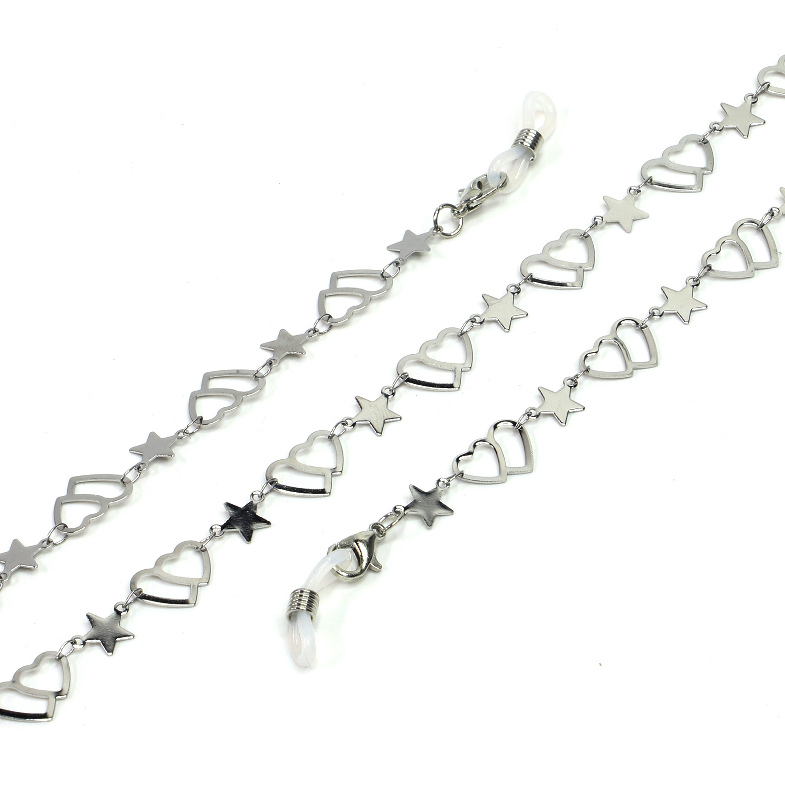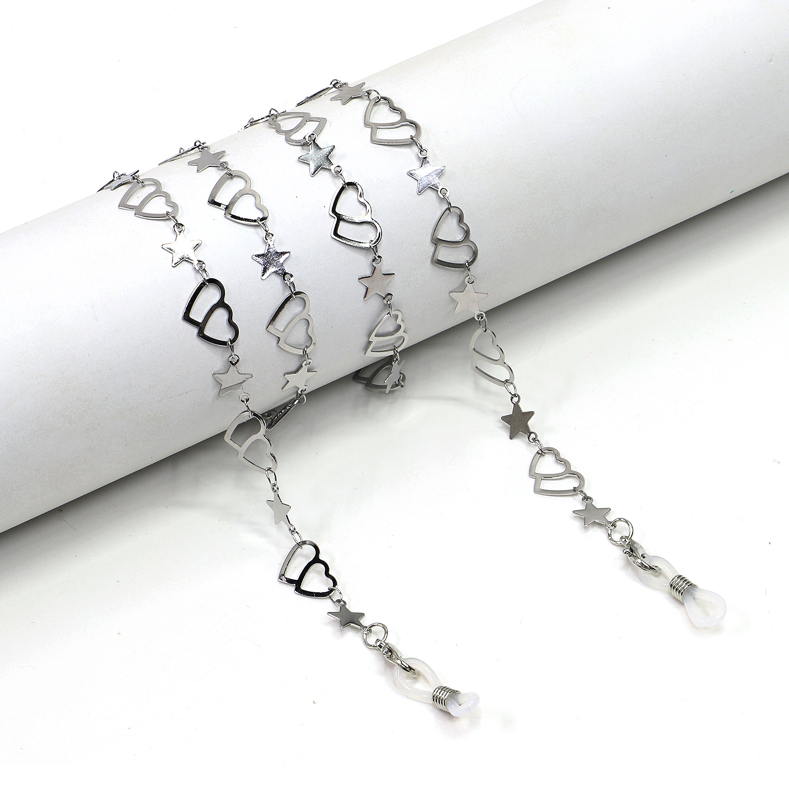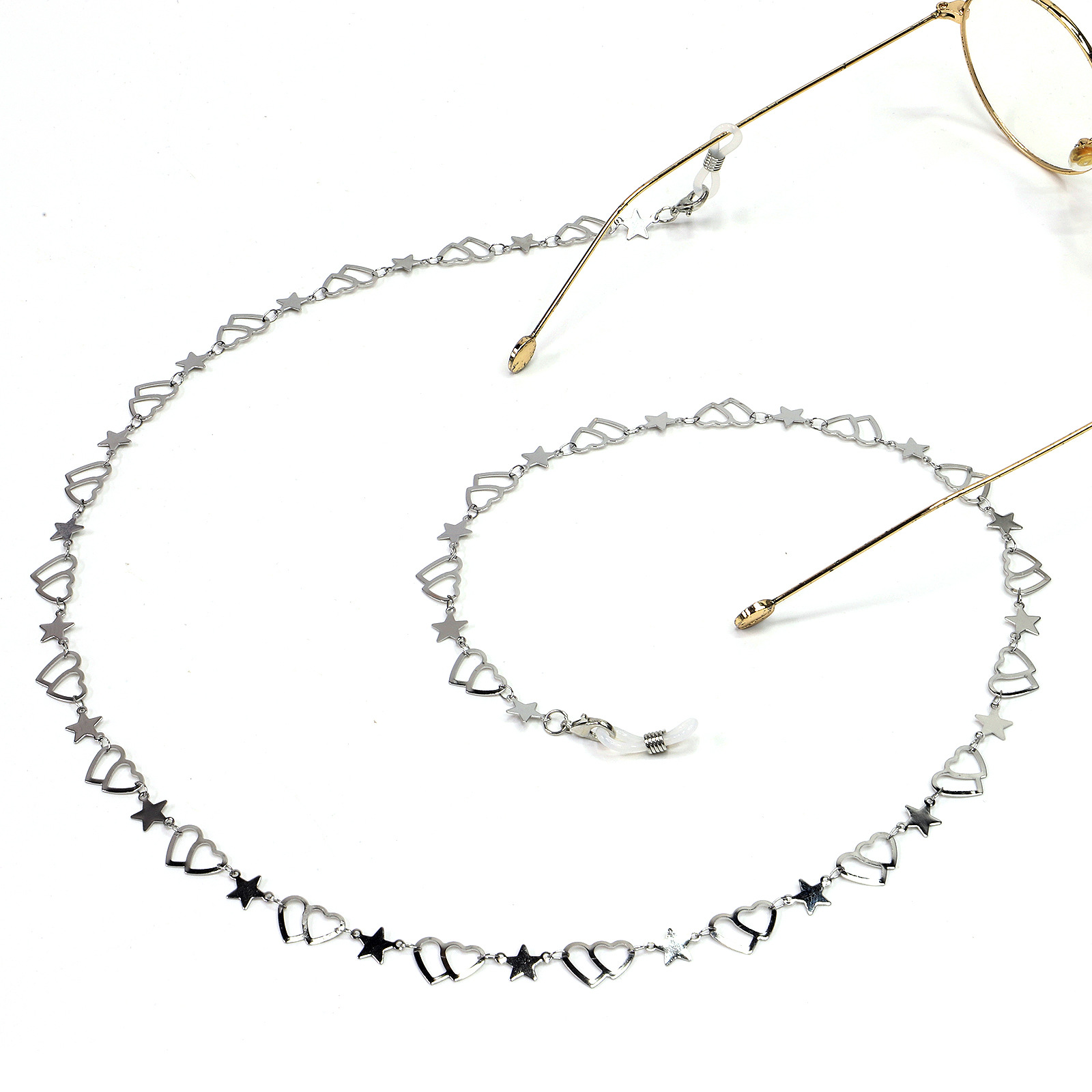 Цепочка для очков из нержавеющей стали с сердечками и звездами GS057