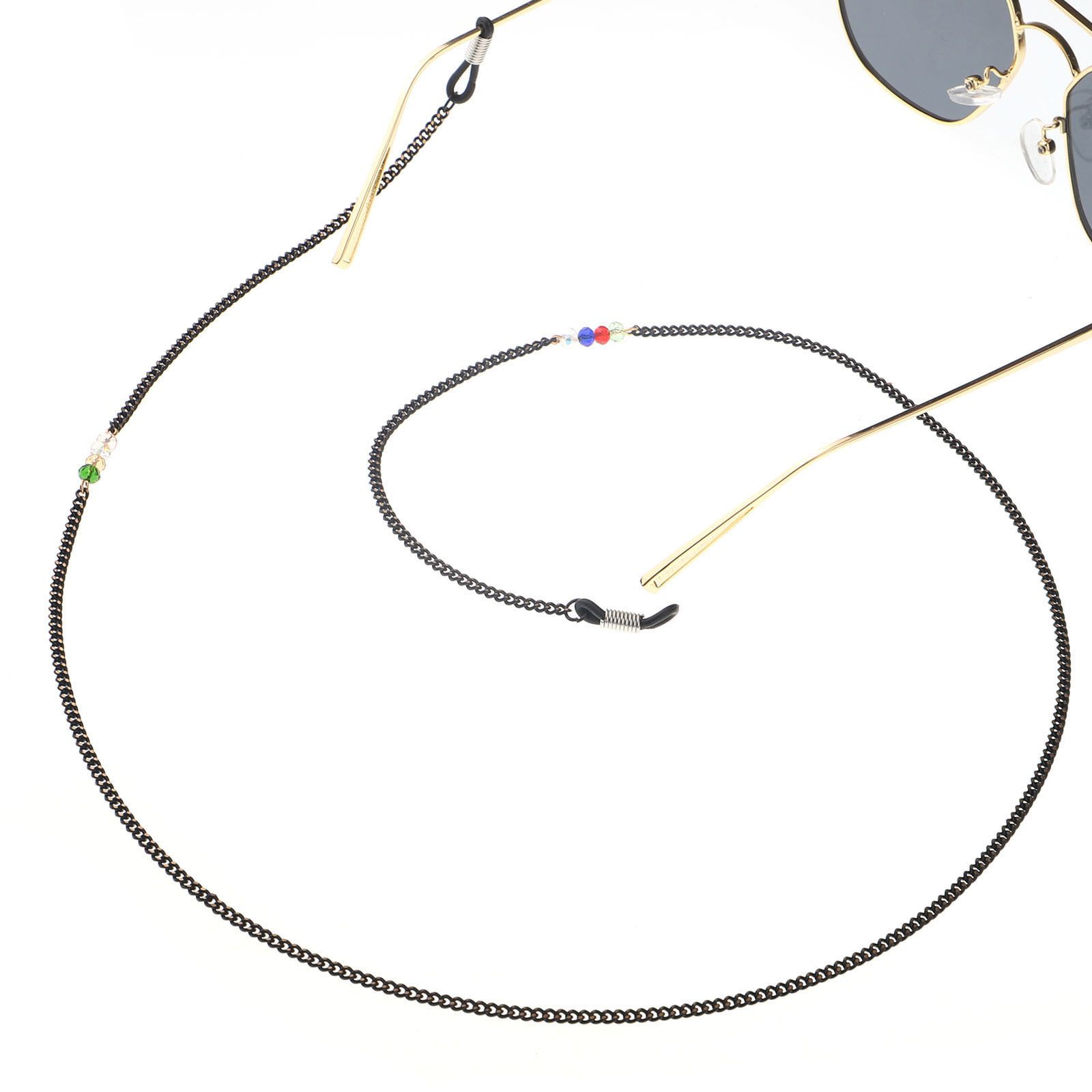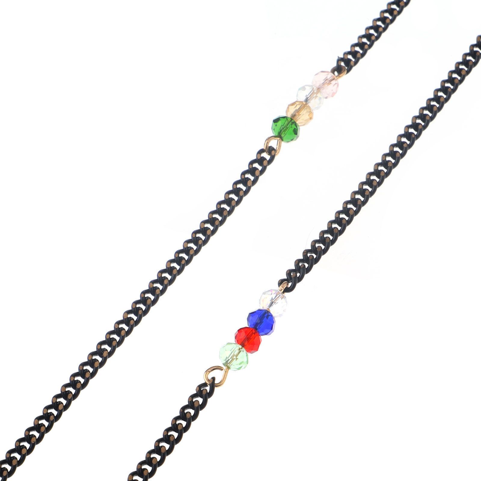 Black-colored metal non-slip chain, with colorful crystal, for glasses and masks GL092