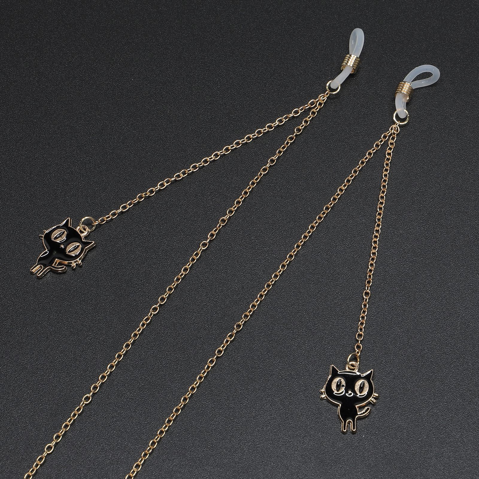 Gold-colored metal non-slip chain, with pendant kitten, for glasses and masks GL247