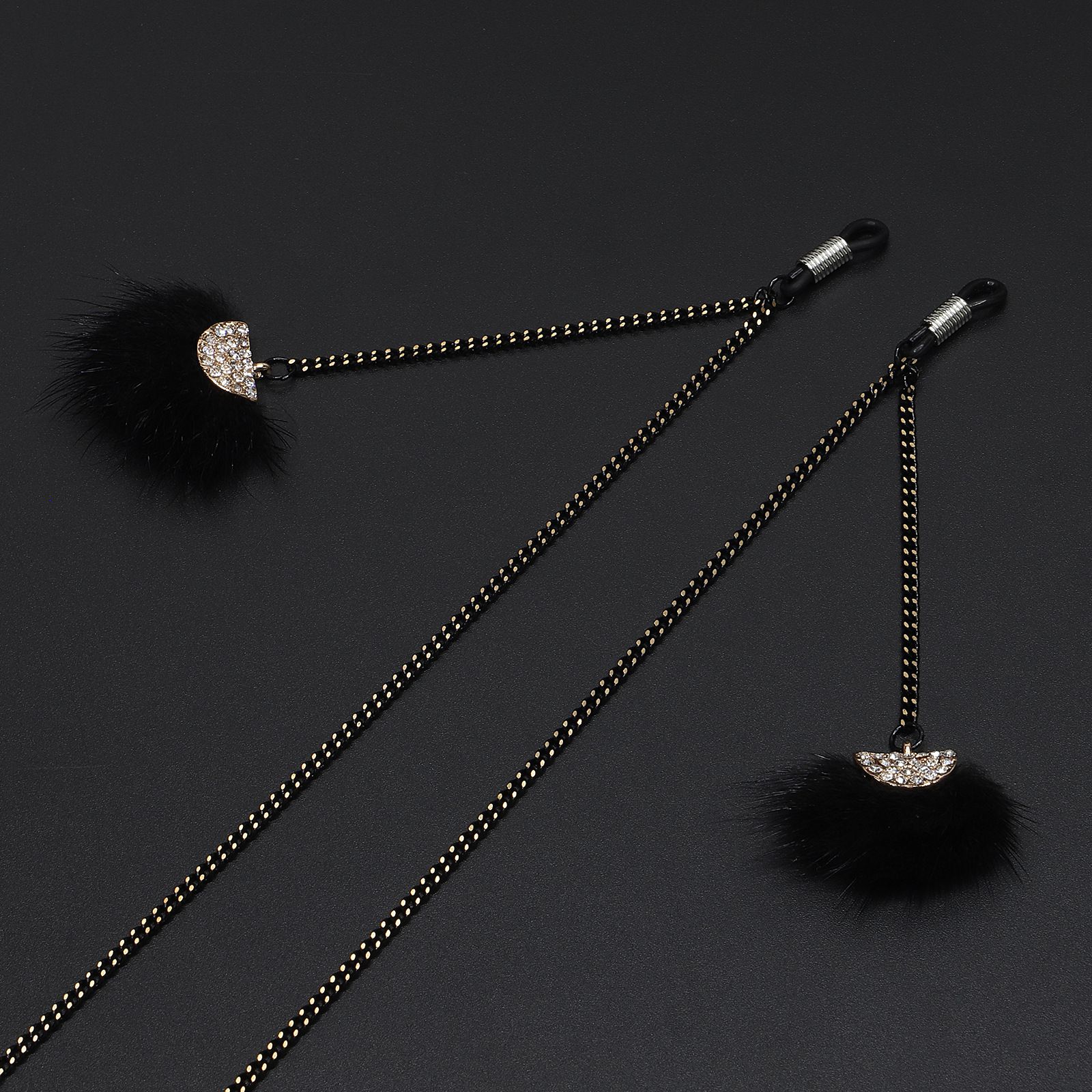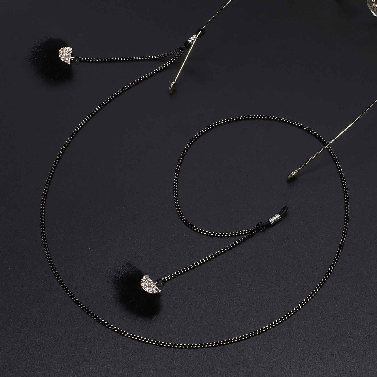 Black-colored metal non-slip chain, with black feather, for glasses and masks GL703