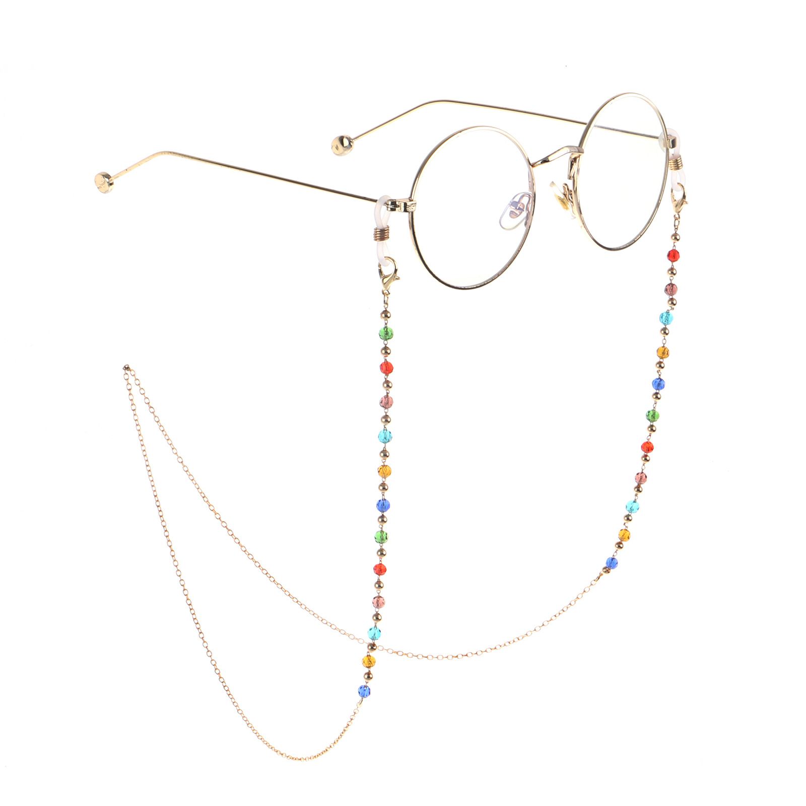 Gold-colored metal non-slip chain, with colored crystal, for glasses and masks GL849